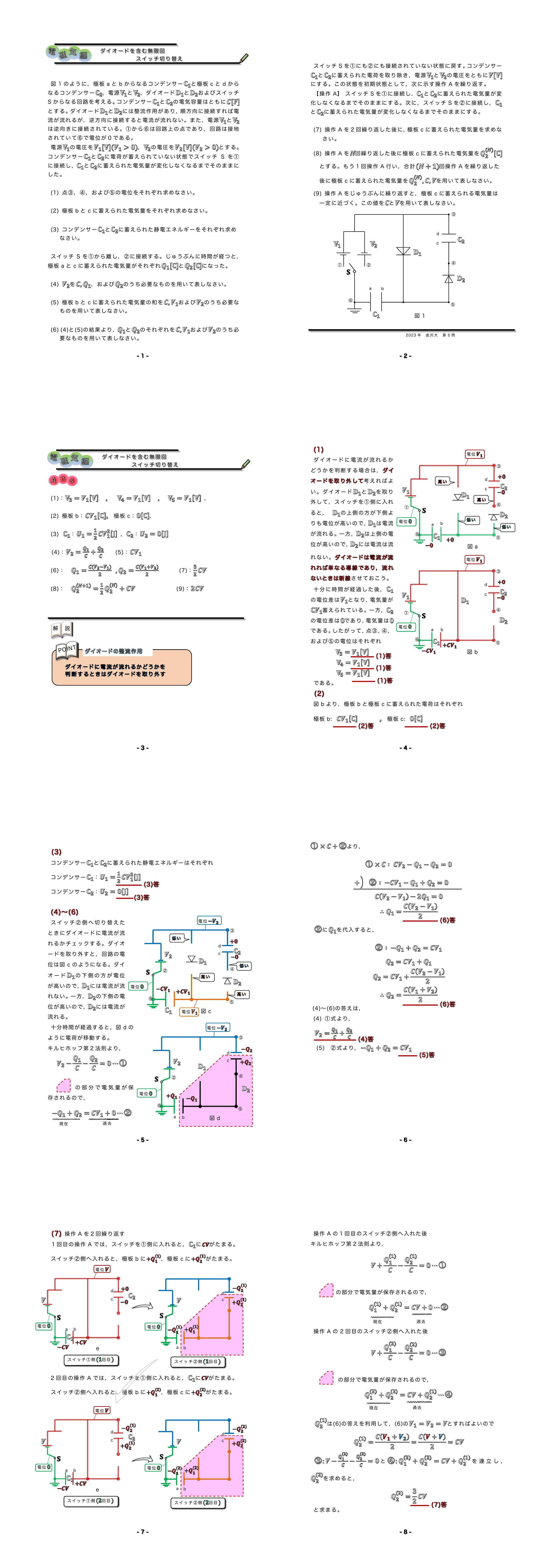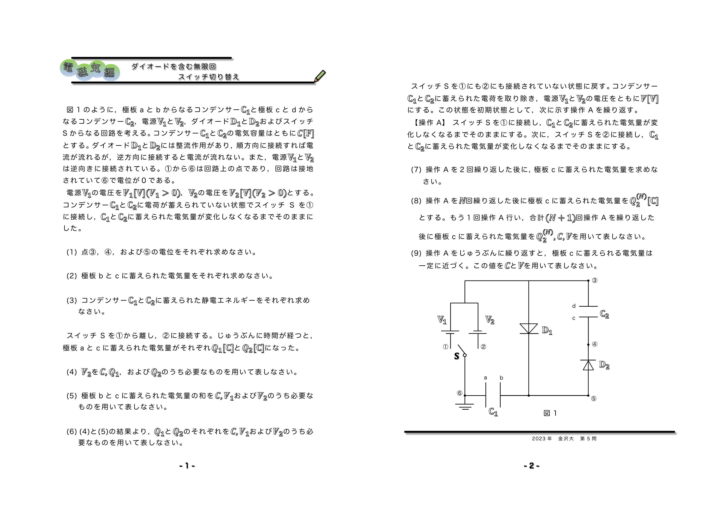ダイオードを含む無限回スイッチ切り替え 2023年金沢大学第5問★★★★ |