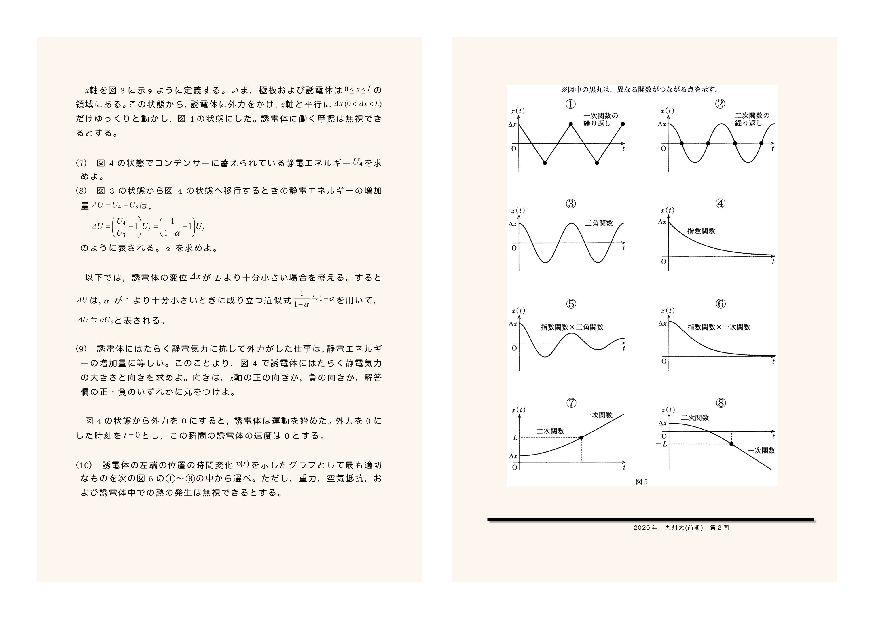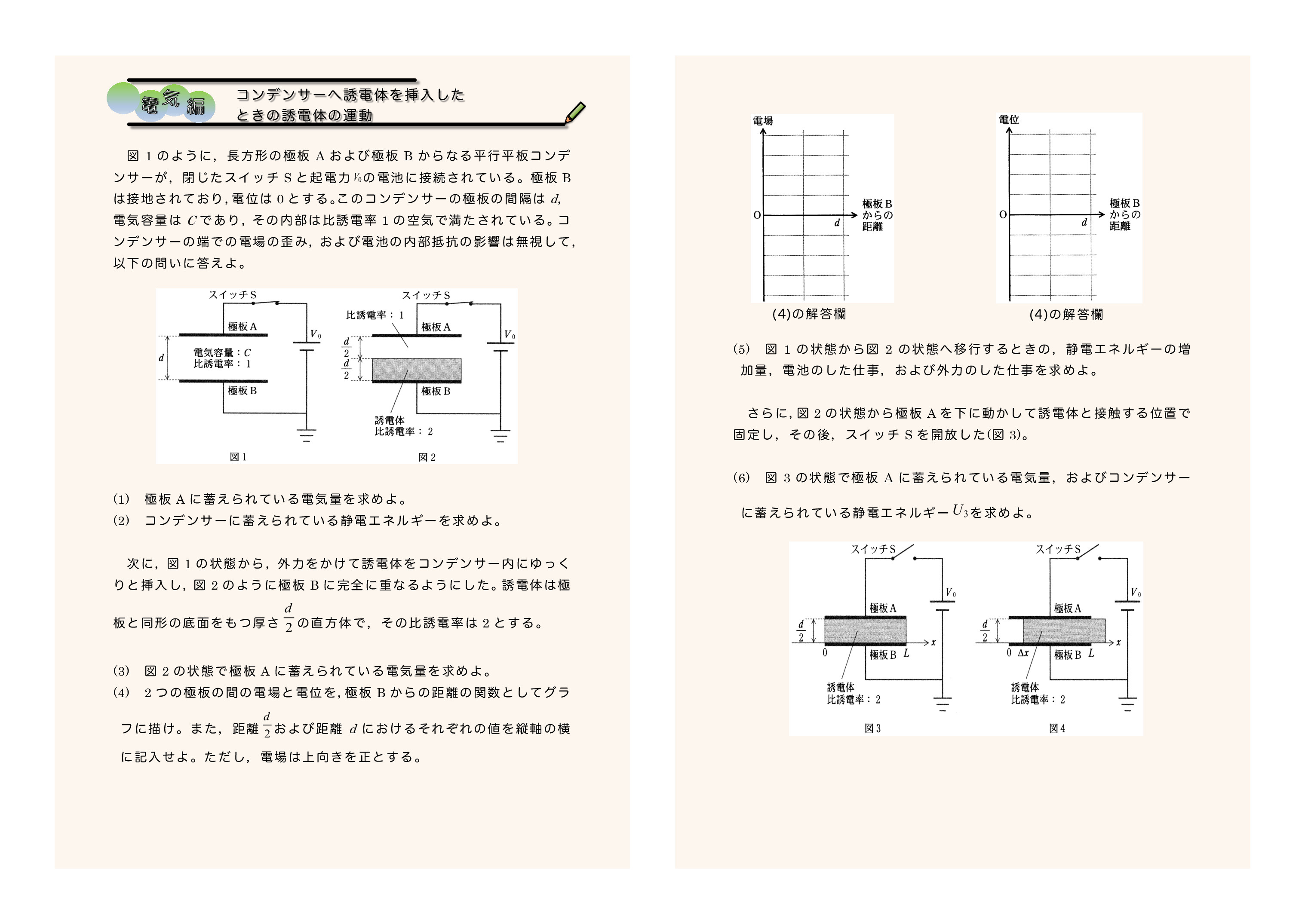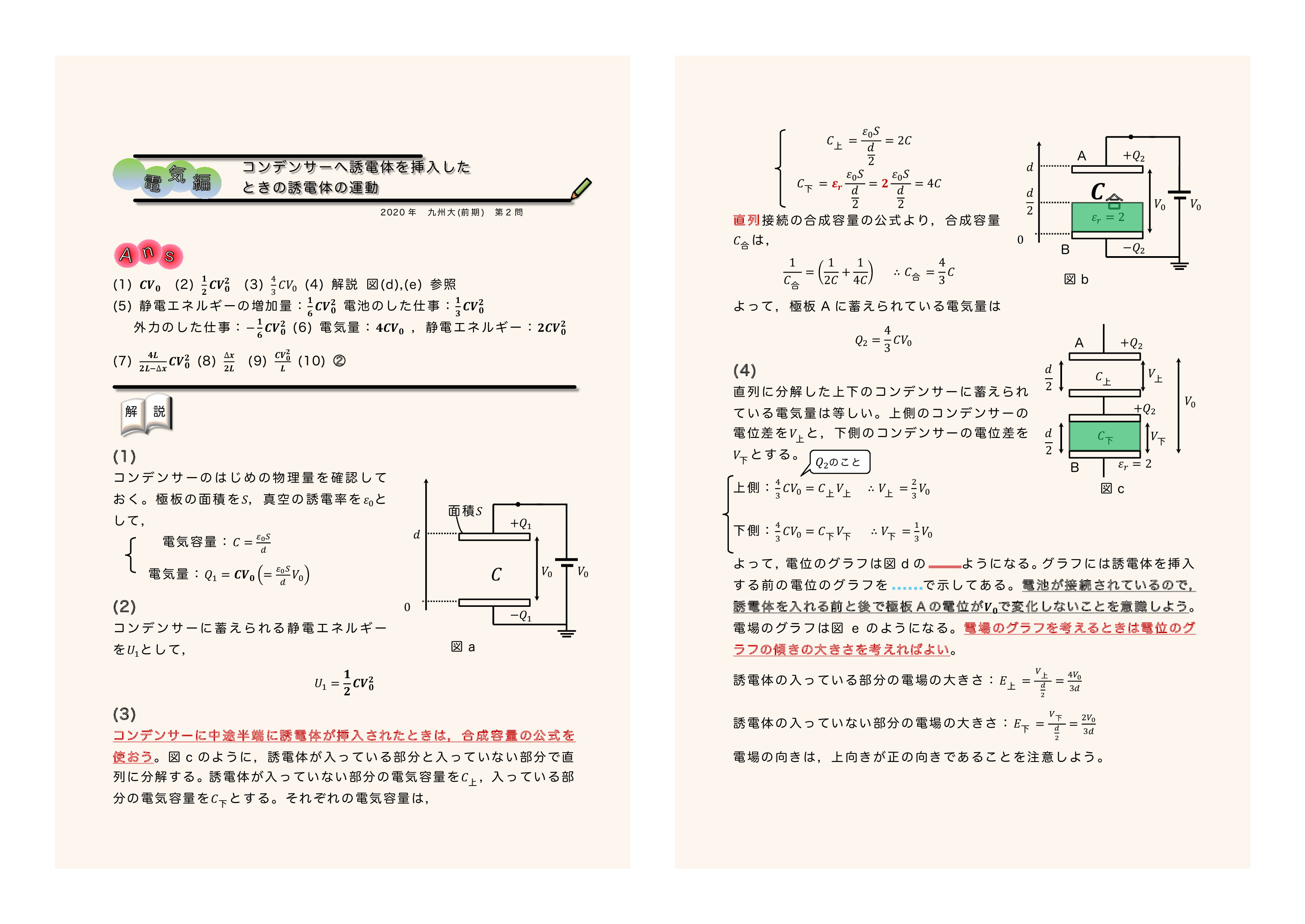 コンデンサーへ誘電体を挿入したときの誘電体の運動 2020年九州大学第2問★★★ |