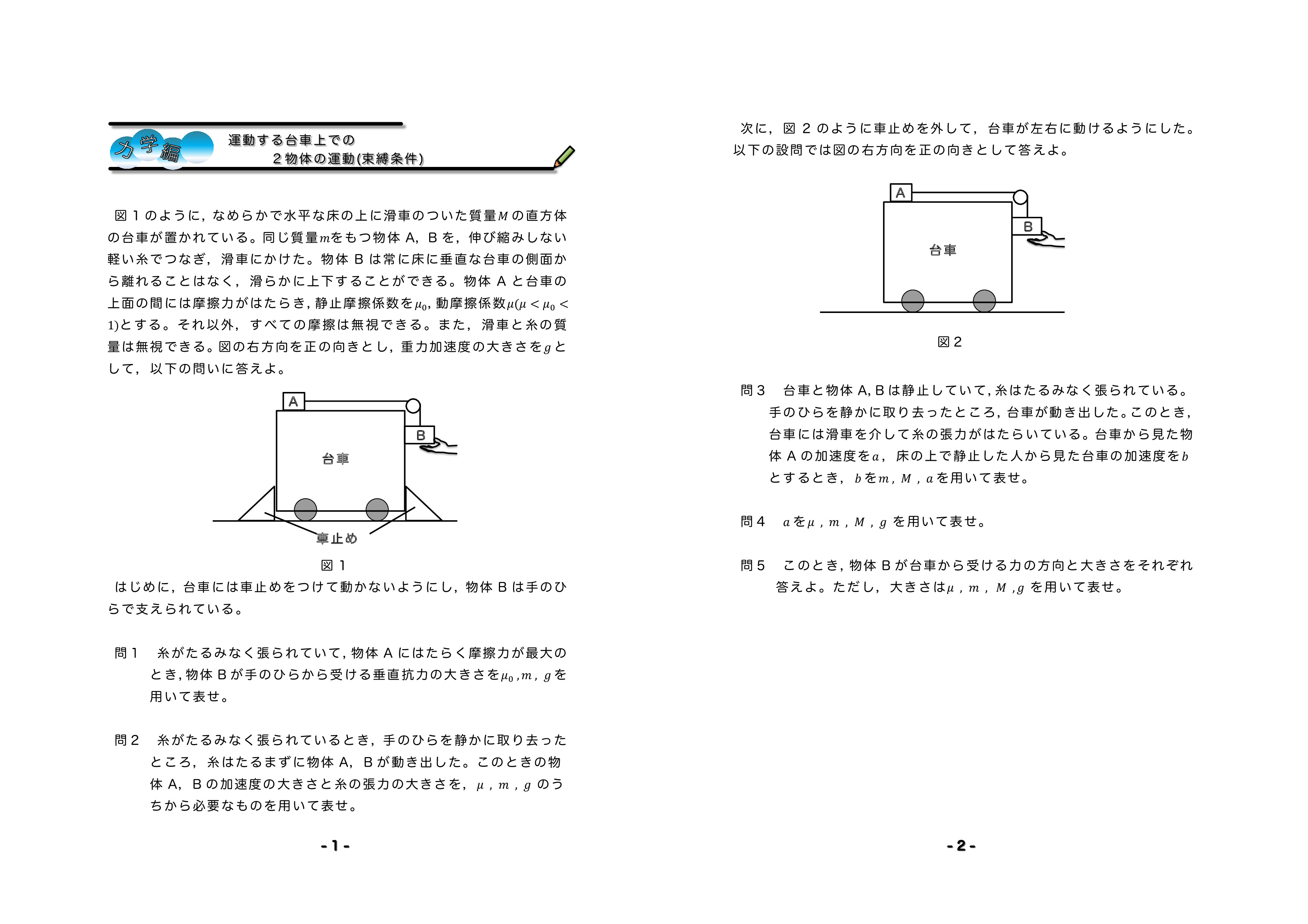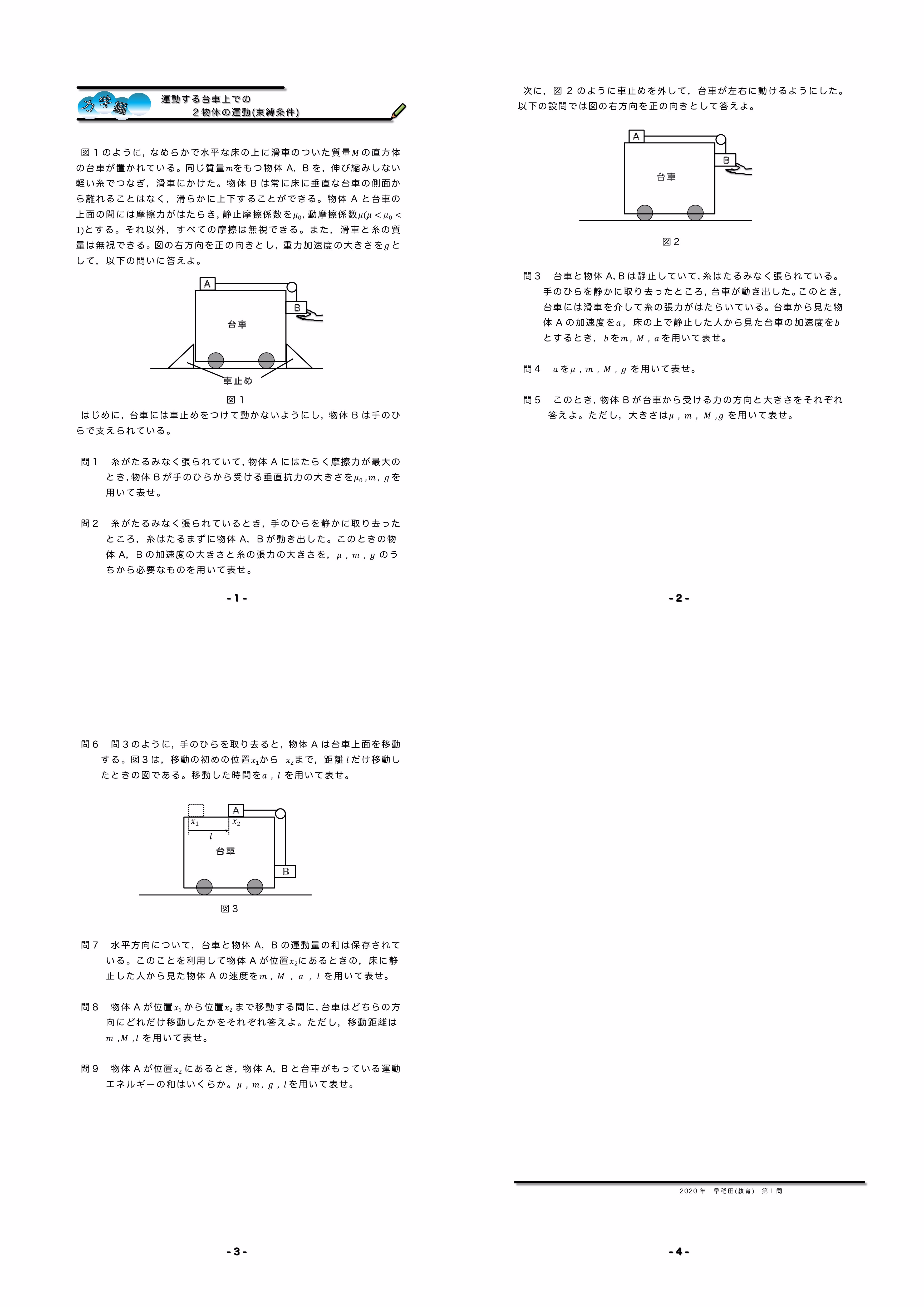 台車上の束縛条件 2020年 早稲田(教育) 第1問★★★★ |