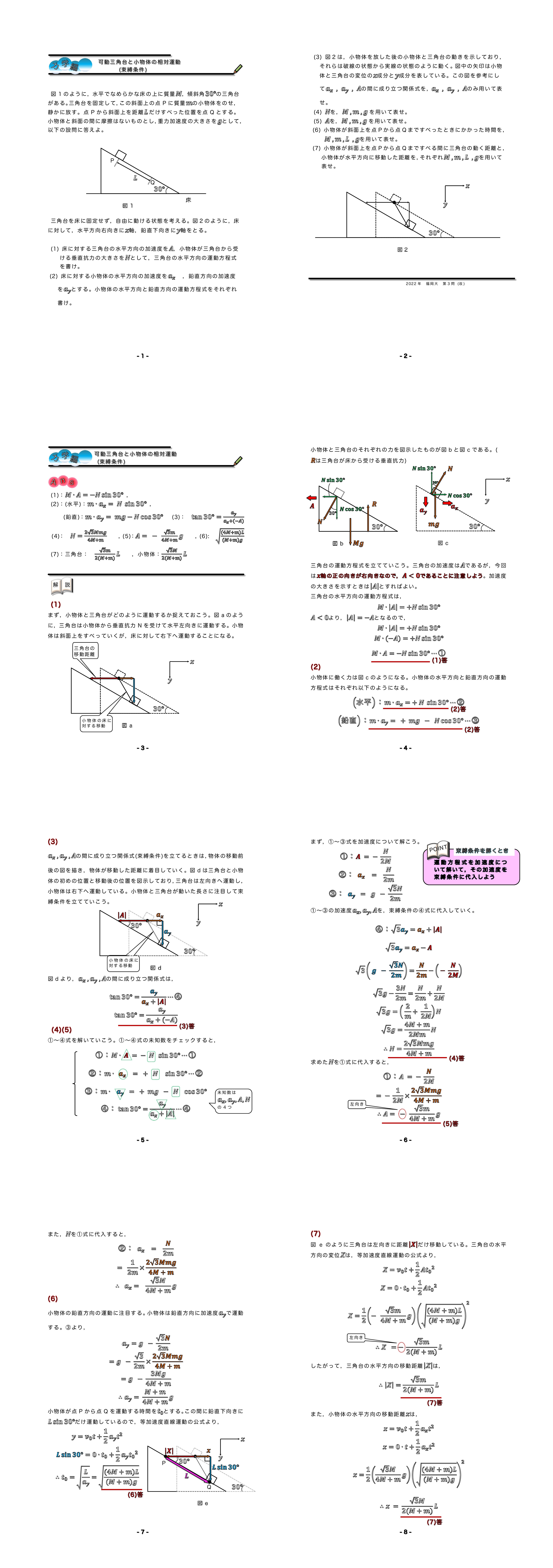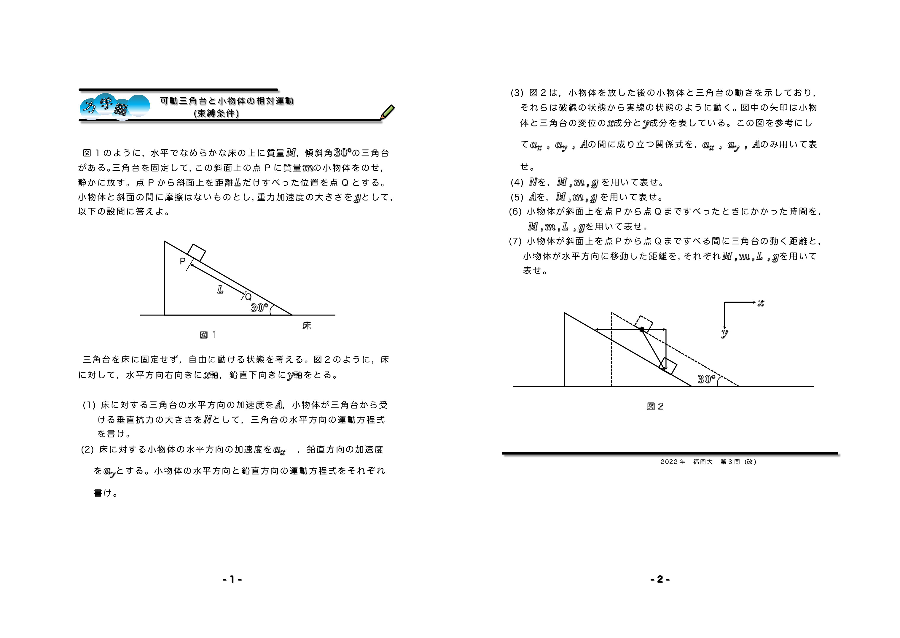 可動三角台と小物体の相対運動 2022年 福岡大 第3問★★★ |