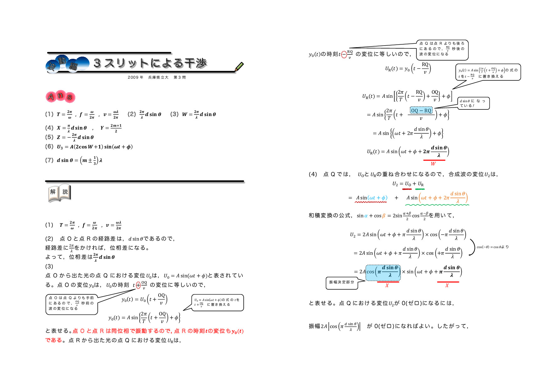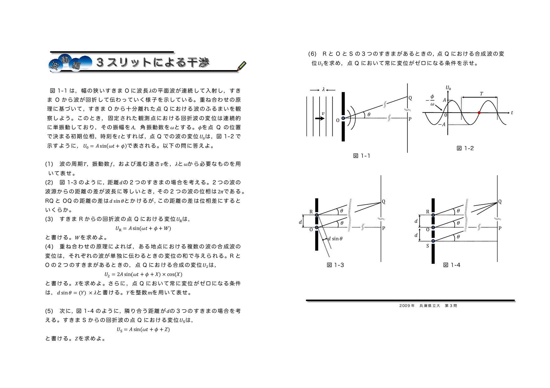 3スリットによる光の干渉 2009年兵庫県立大第3問★★★★ |