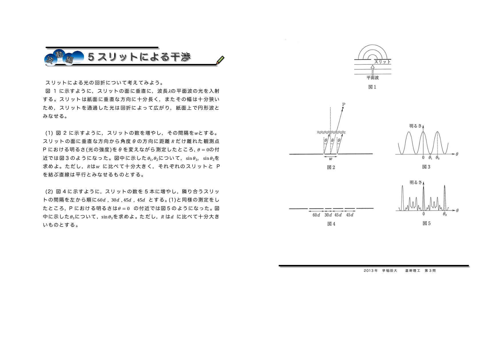 5スリットによる光の干渉 2013年早稲田大 基幹理工 第3問★★★★★ |