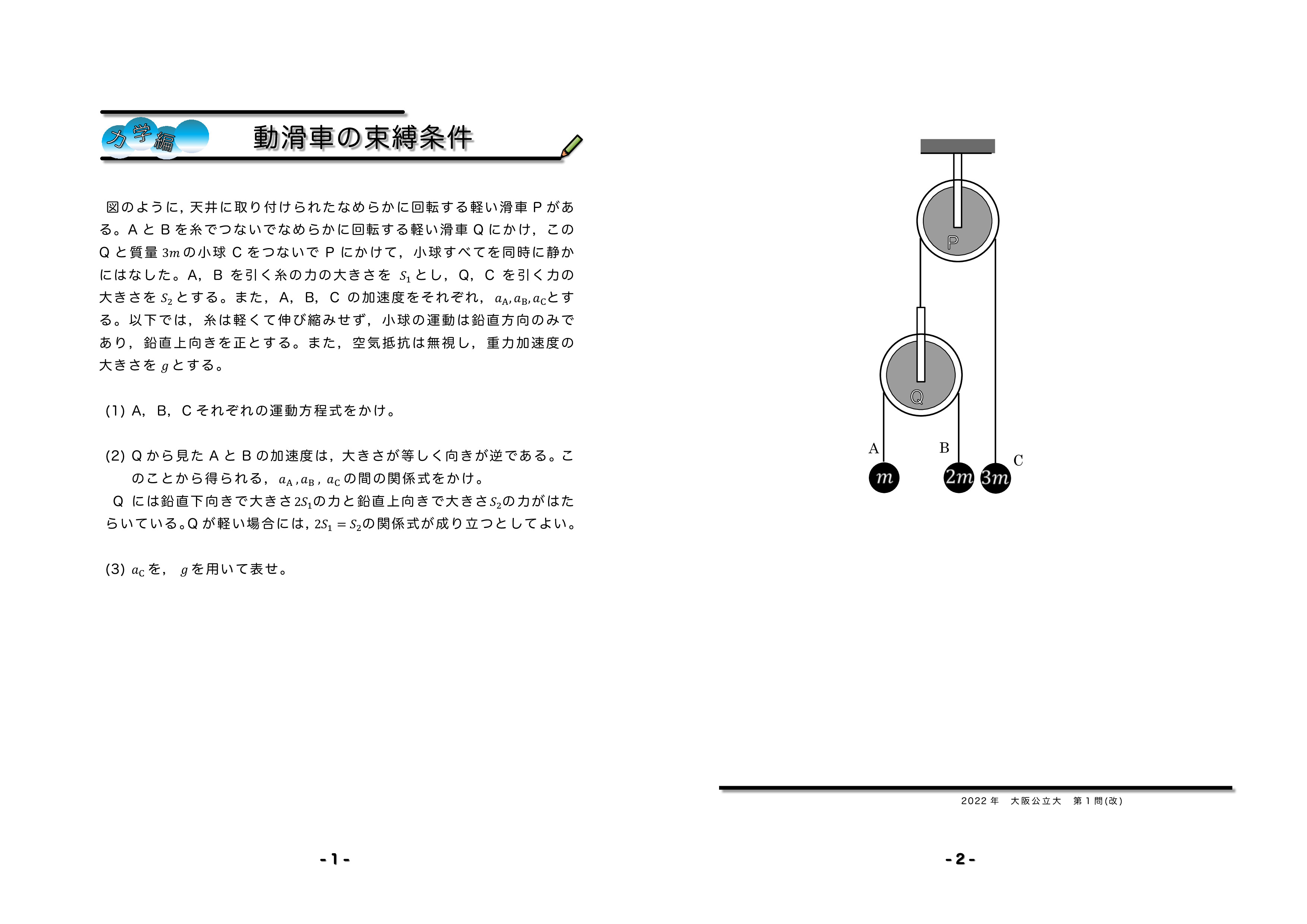 下の画像をタッチすると例題1:動滑車による3物体の運動の解説が見れます