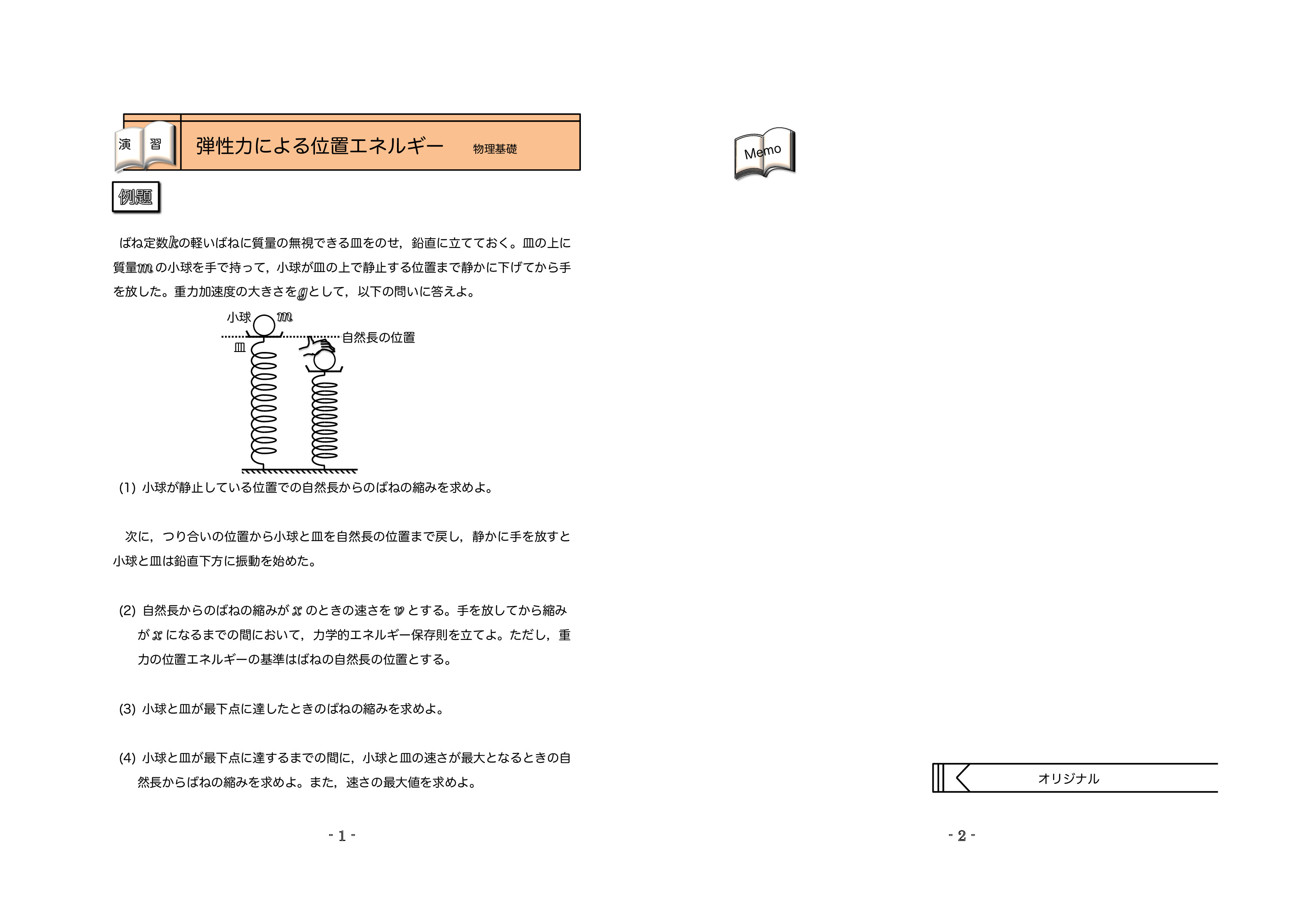 | 例題3:弾性力による位置エネルギー | 例題4:物体に働く力のする仕事 | ||||