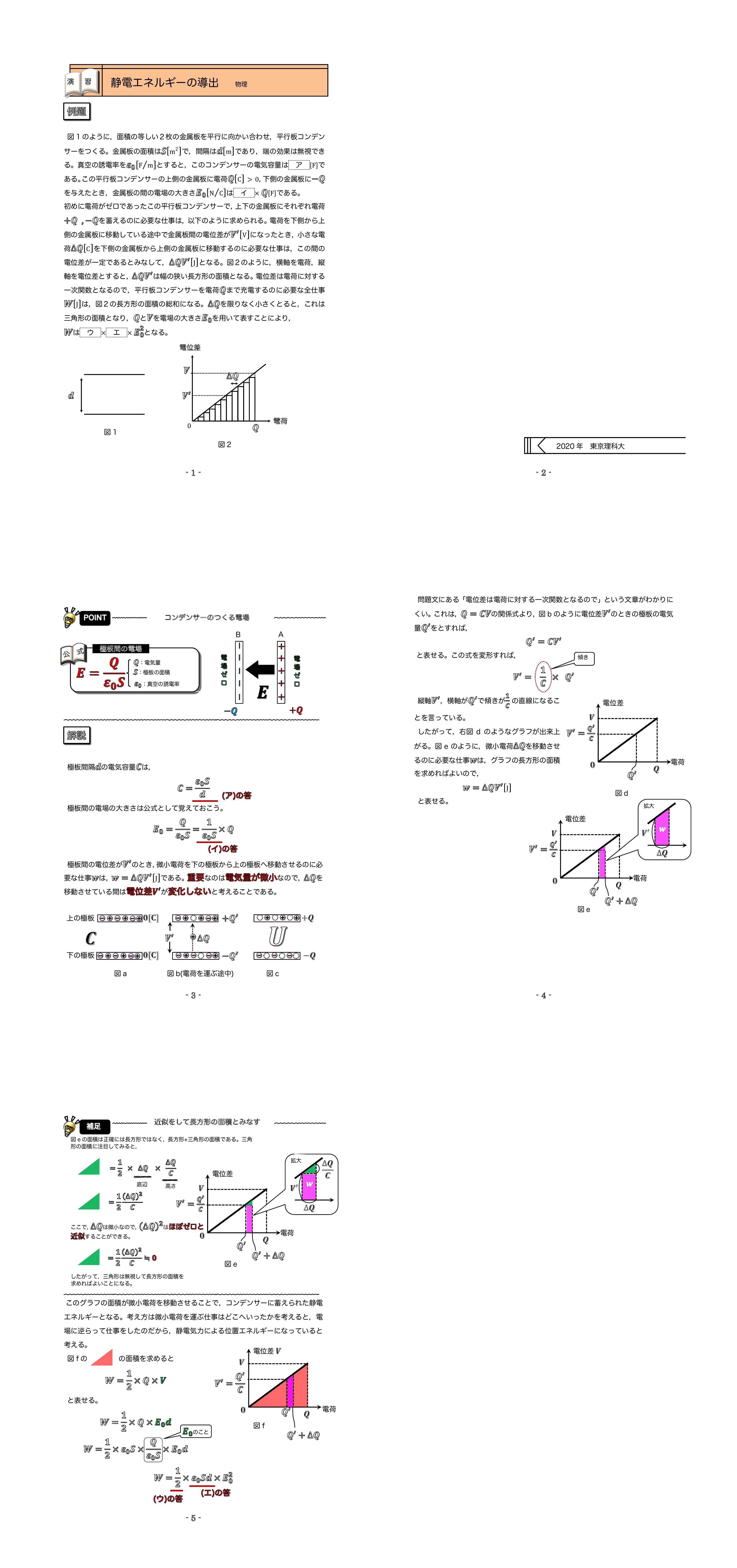 | 静電エネルギーの導出過程が入試で出る場合は以下のように出題されるので,導出方法は身につけておきましょう