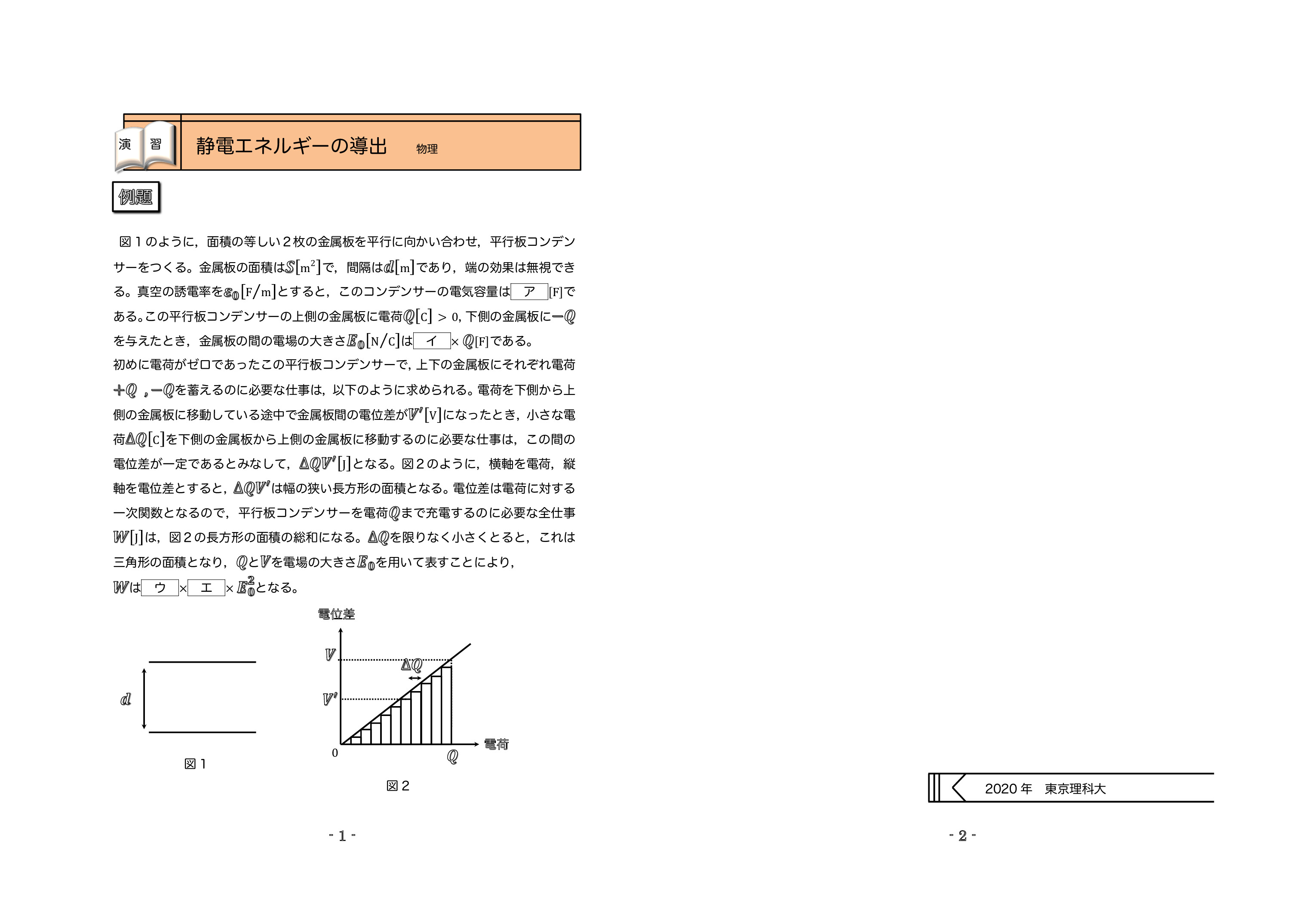 解説はこちら | 下の画像をタッチすると例題2:コンデンサーへの金属板の挿入の解説が見れます