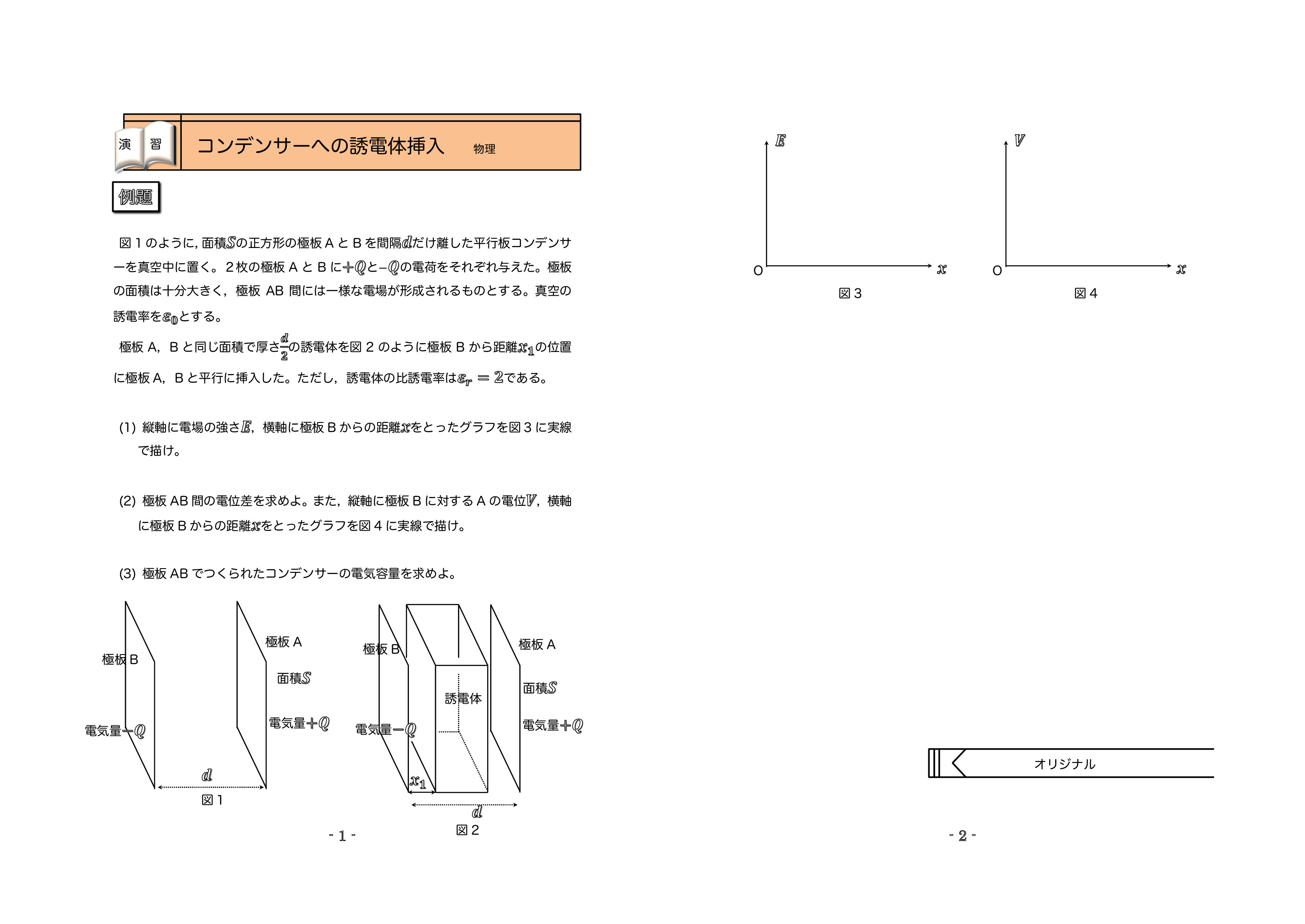 解説No.1 解説No.2 | 下の画像をタッチすると例題3:コンデンサーへの誘電体の挿入の解説が見れます