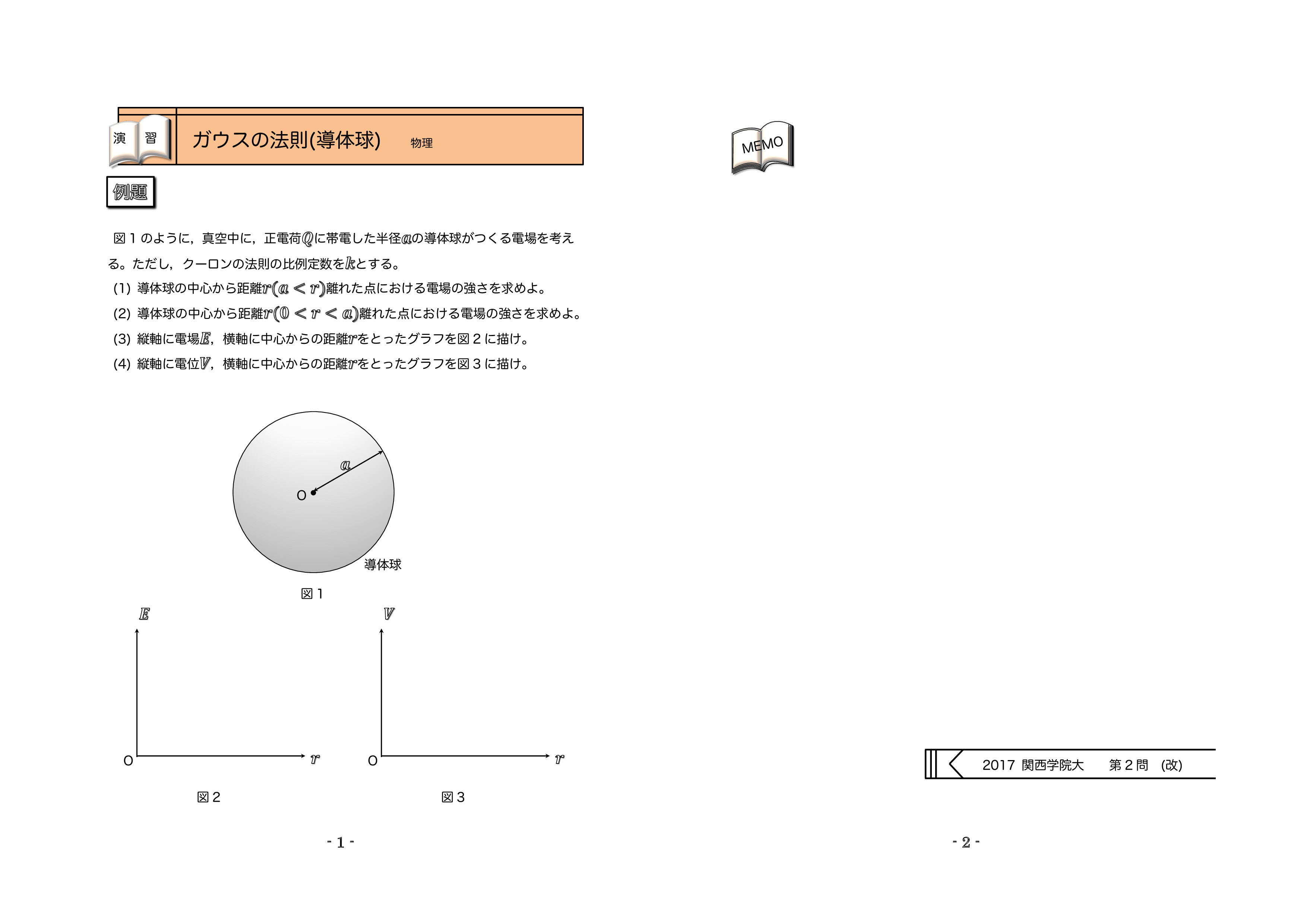 下の画像をタッチすると例題:ガウスの法則(導体球)の解説が見れます
