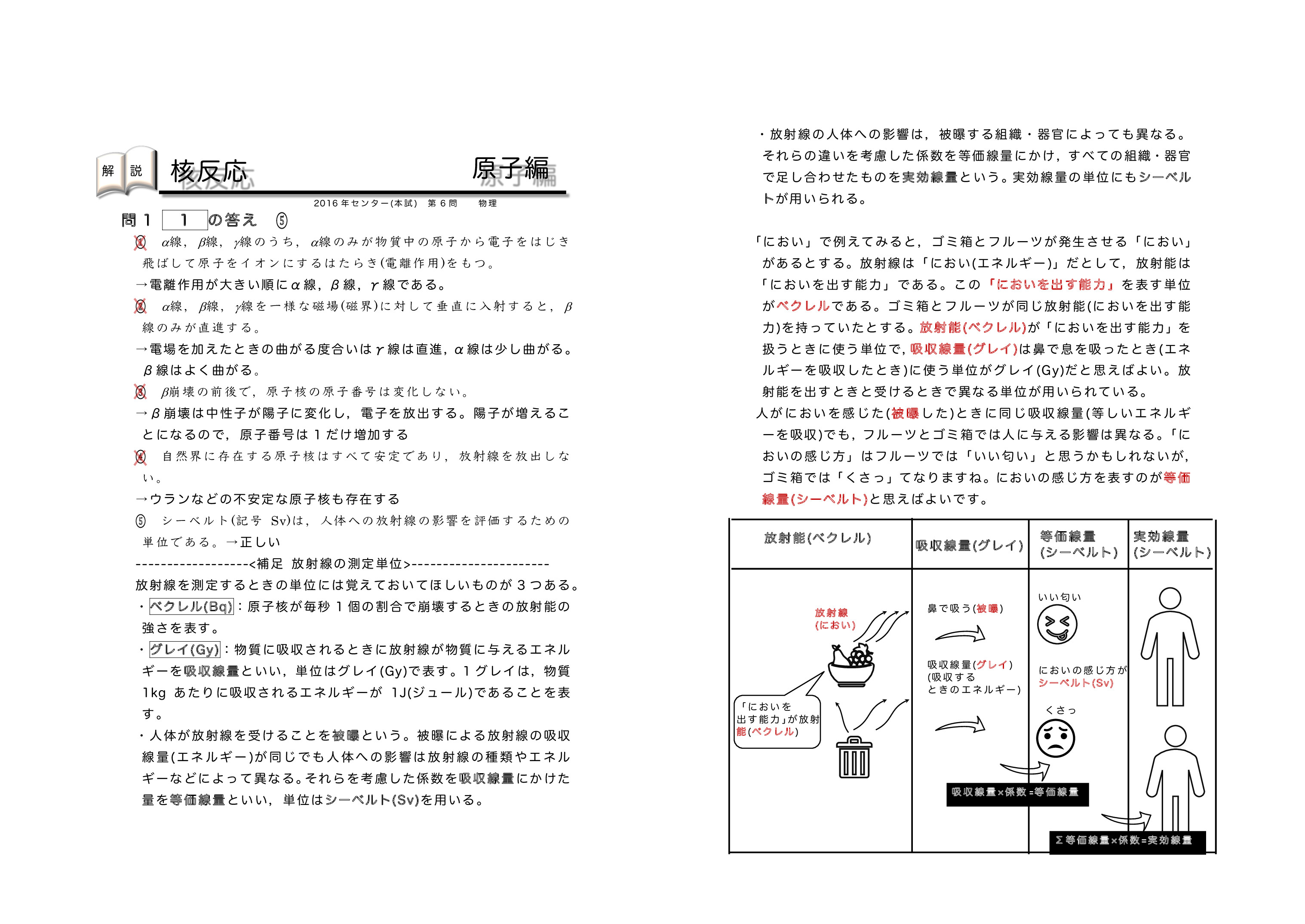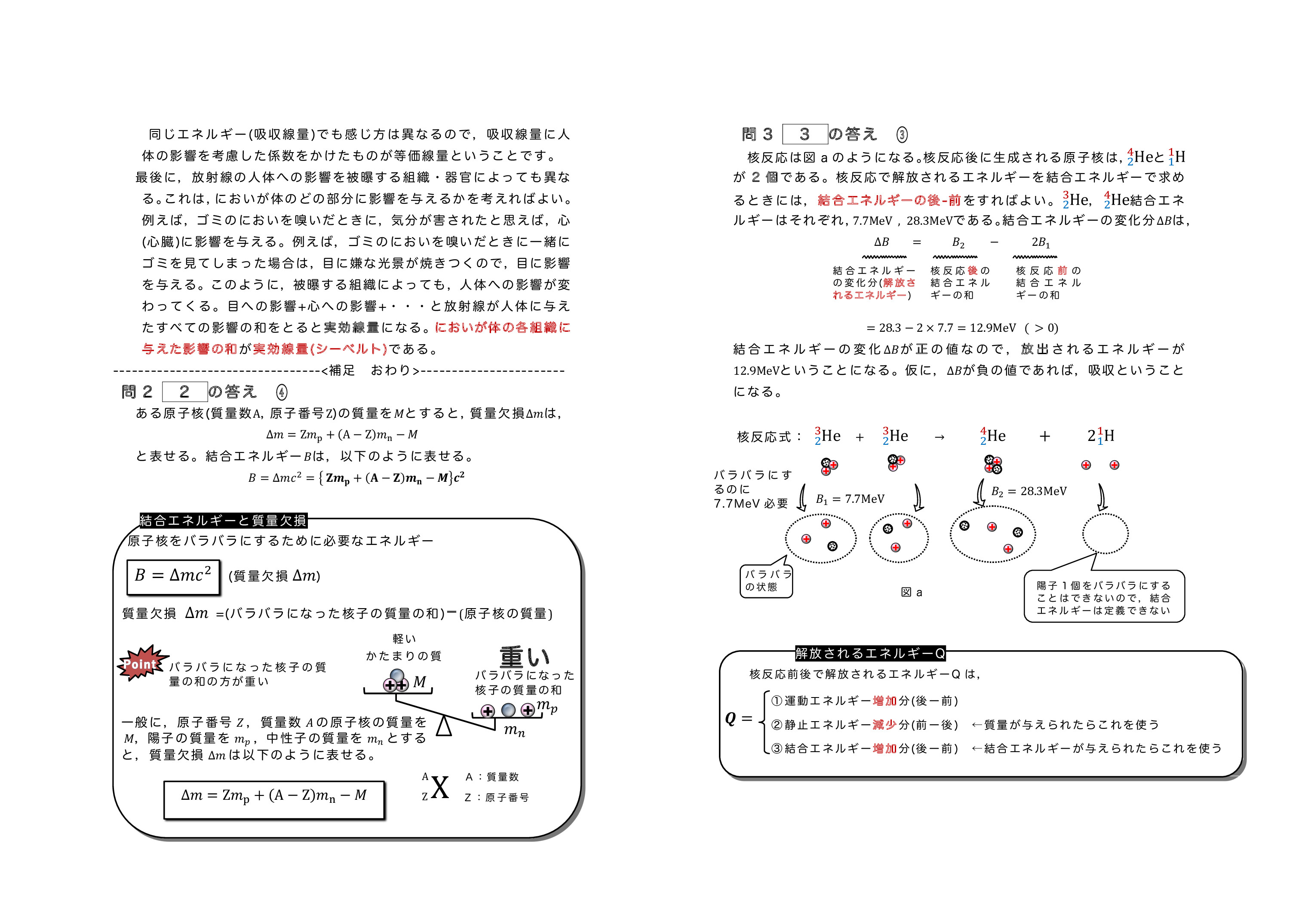 | 結合エネルギーの解説プリントになります。 結合エネルギーを忘れてしまった人は 確認しておいてください。 レクチャーはこちら | 核反応の解説プリントになります。 核反応を忘れてしまった人は 確認しておいてください。 レクチャー①はこちら レクチャー②はこちら | ↓下の画像をクリックすれば見れます。