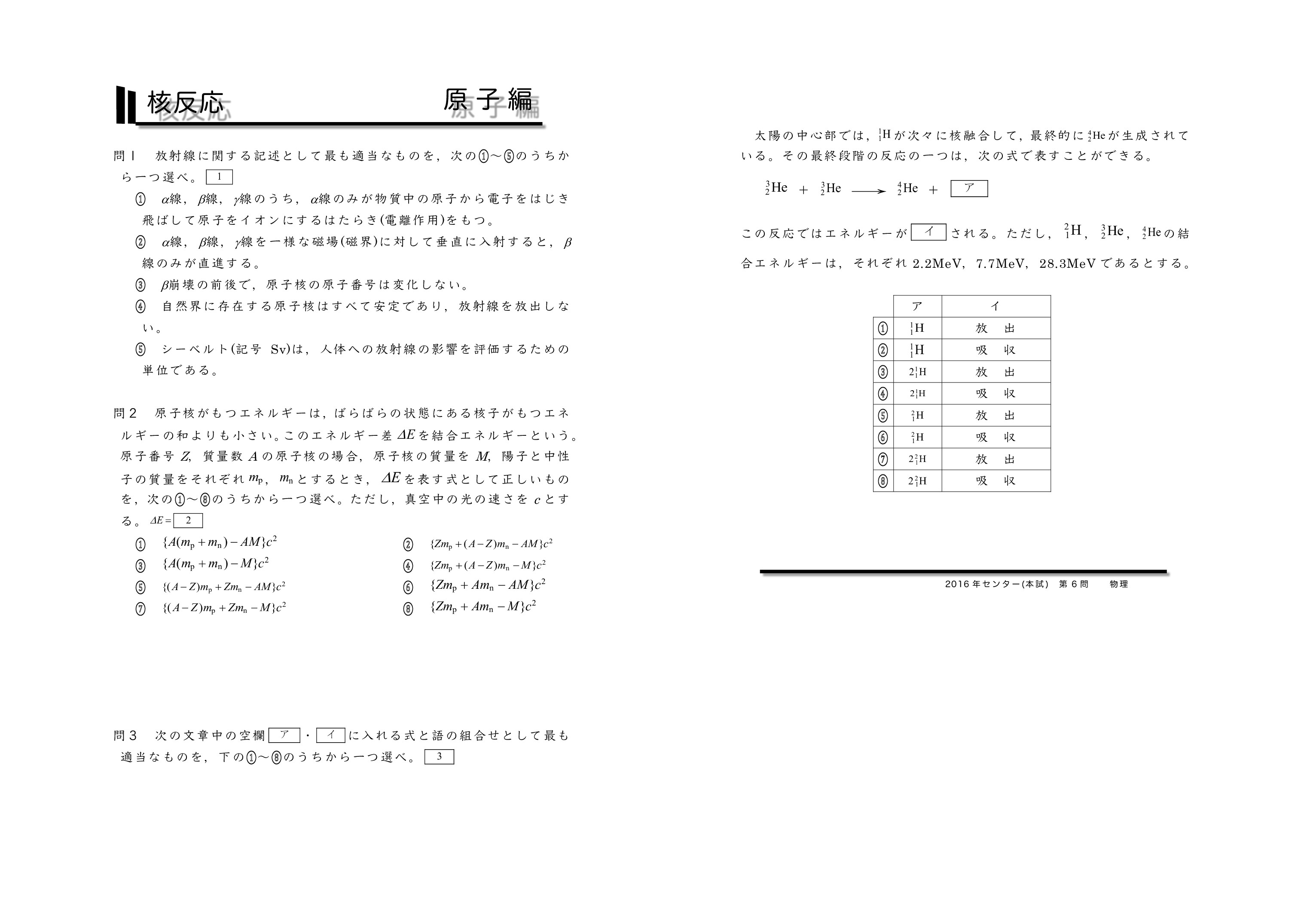| 結合エネルギーの解説 | 核反応の解説 | 2014年追試 |