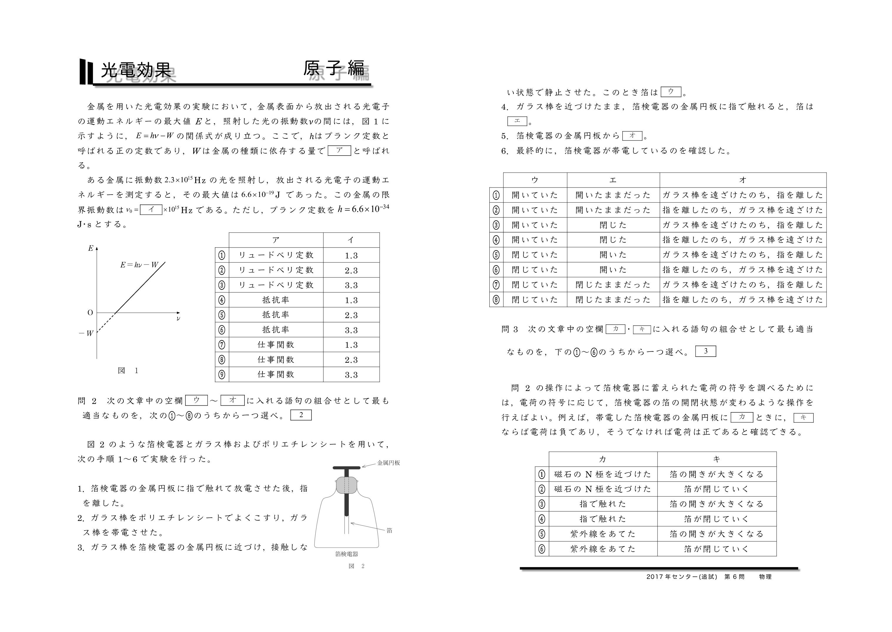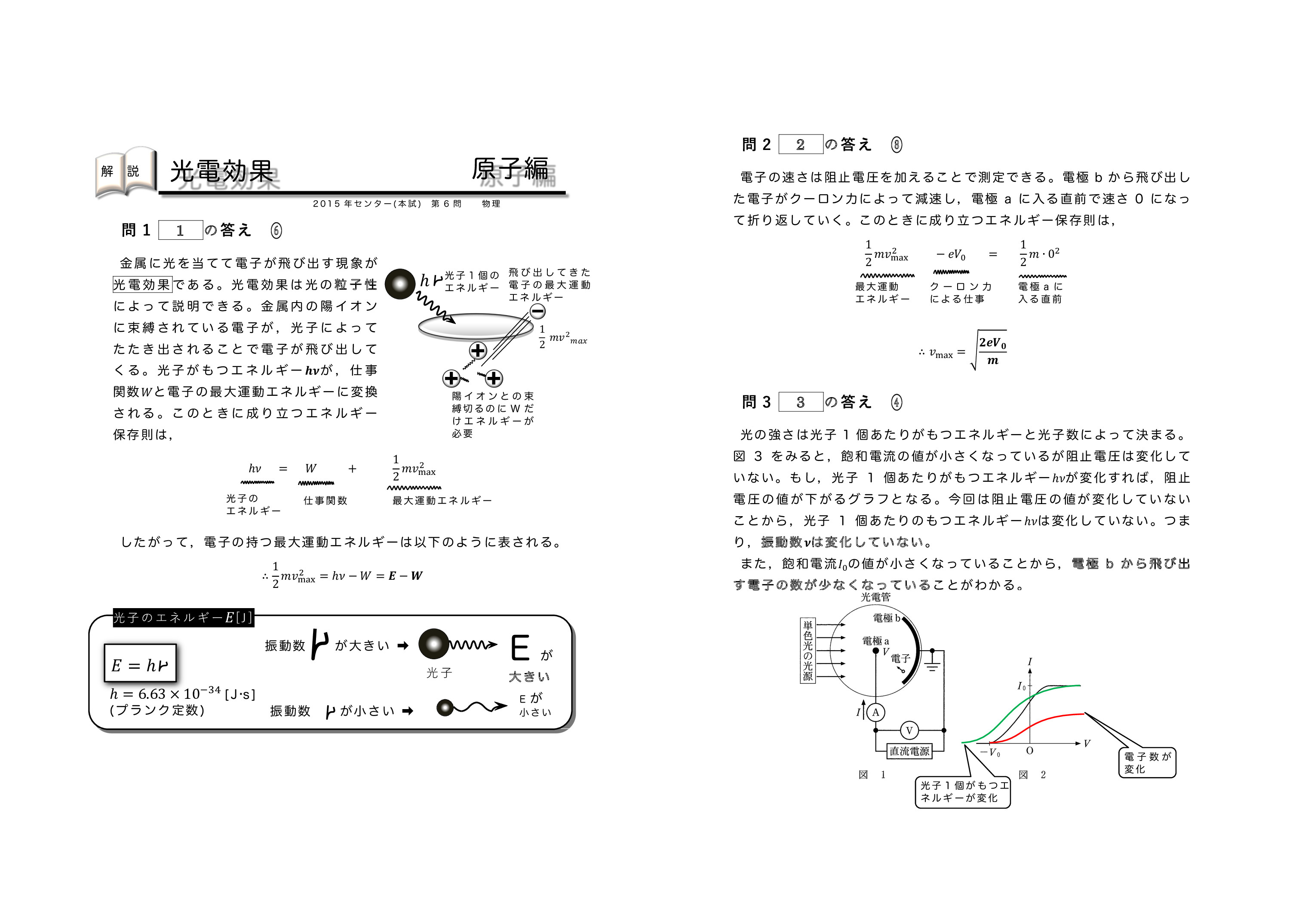 | 光電効果の解説 | 2015年本試 | 2017年追試 |