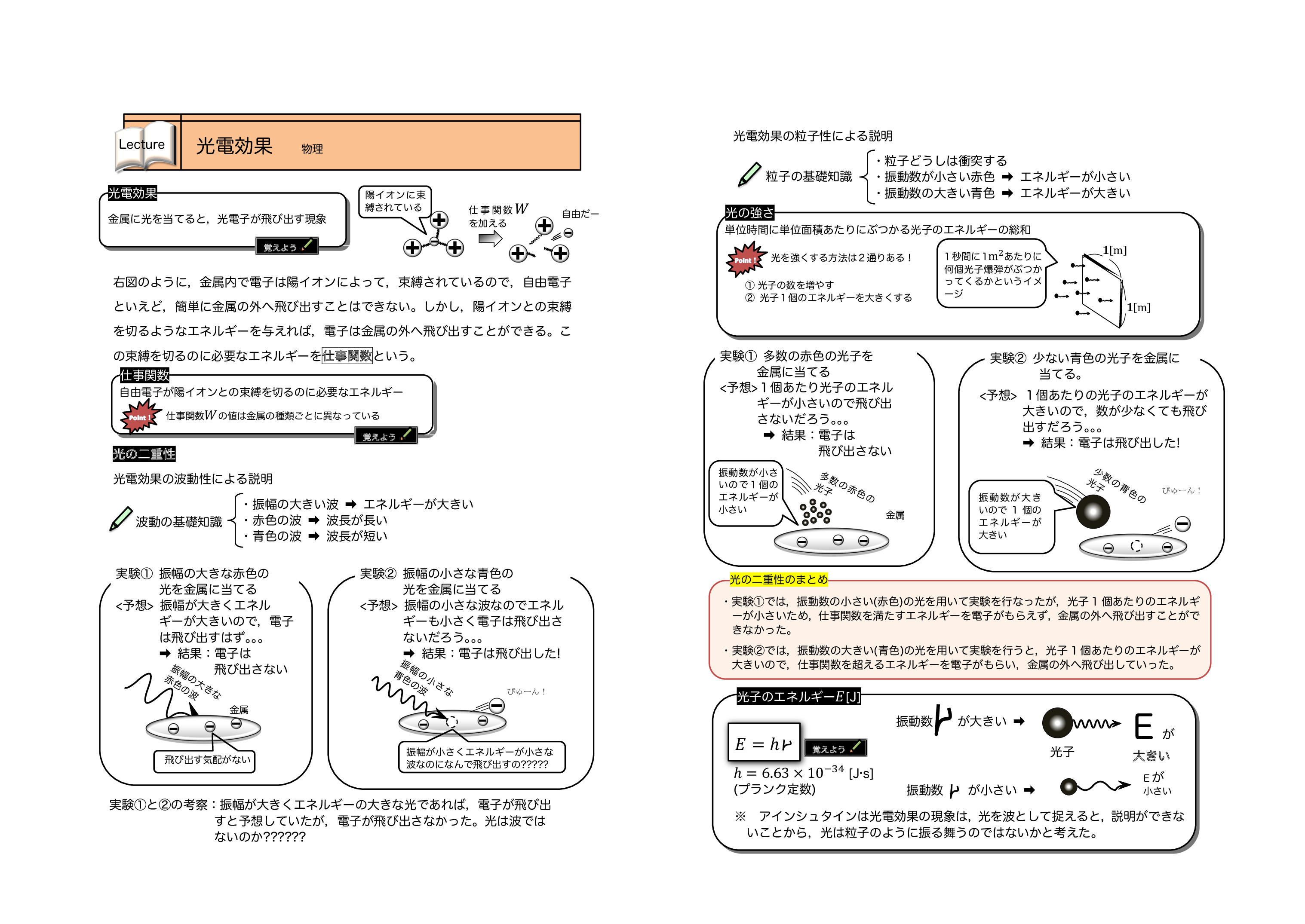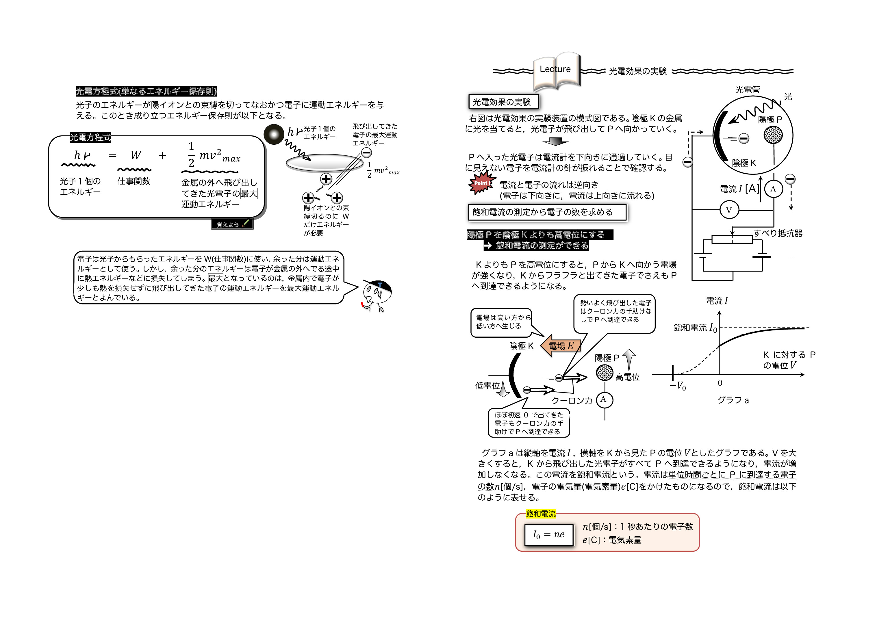 | 光電効果の解説プリントになります。光電効果の実験を忘れてしまった人は確認しておいてください。 レクチャー①はこちら レクチャー②はこちら レクチャー③はこちら | ↓下の画像をクリックすれば見れます。