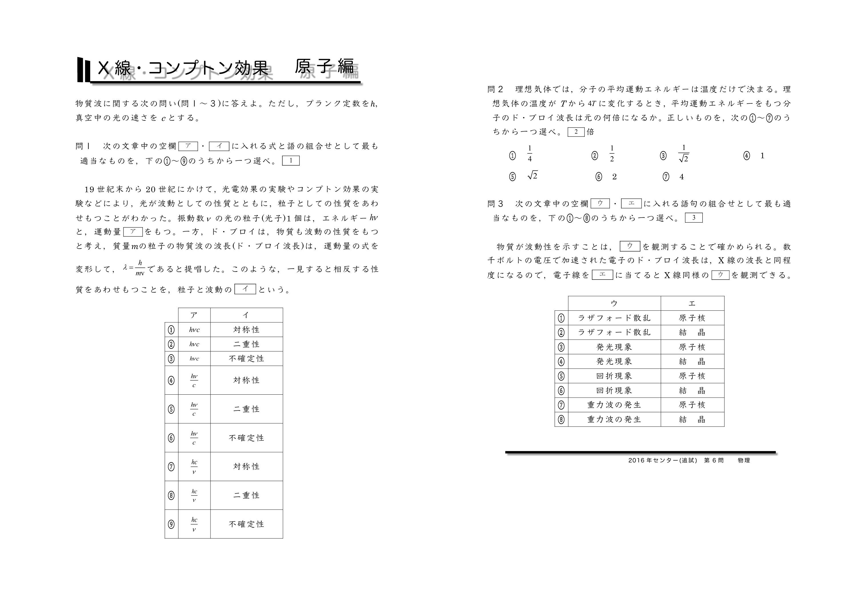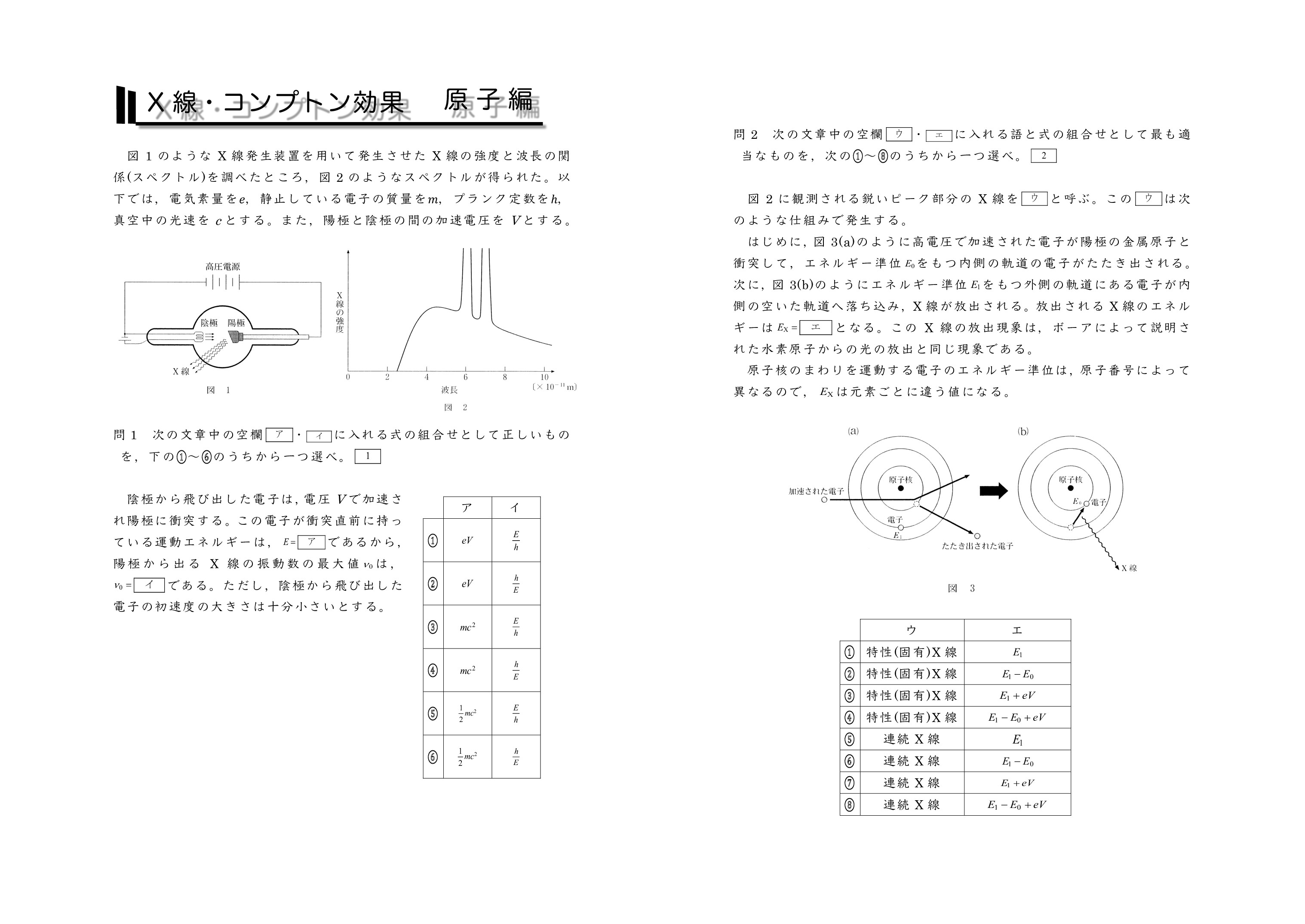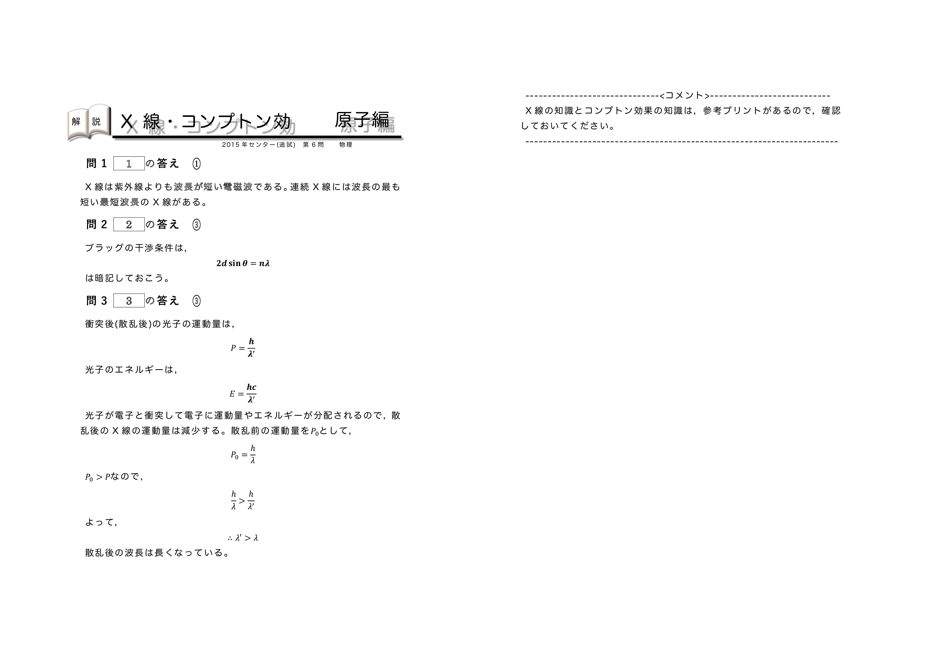 | 【 原子編 X線・コンプトン効果・物質波 】 | ||