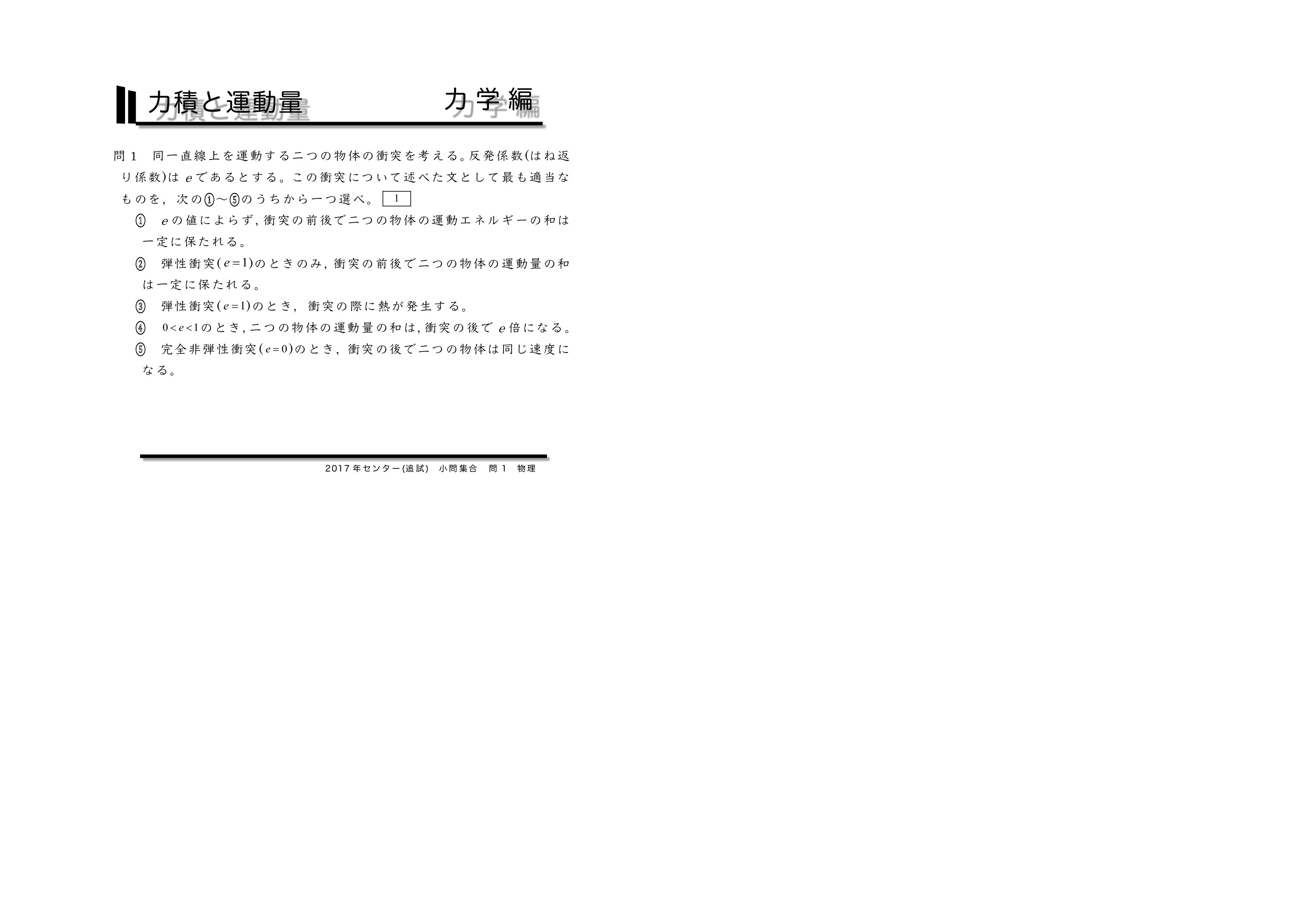 | 【 力学編 力積と運動量 】 | ||