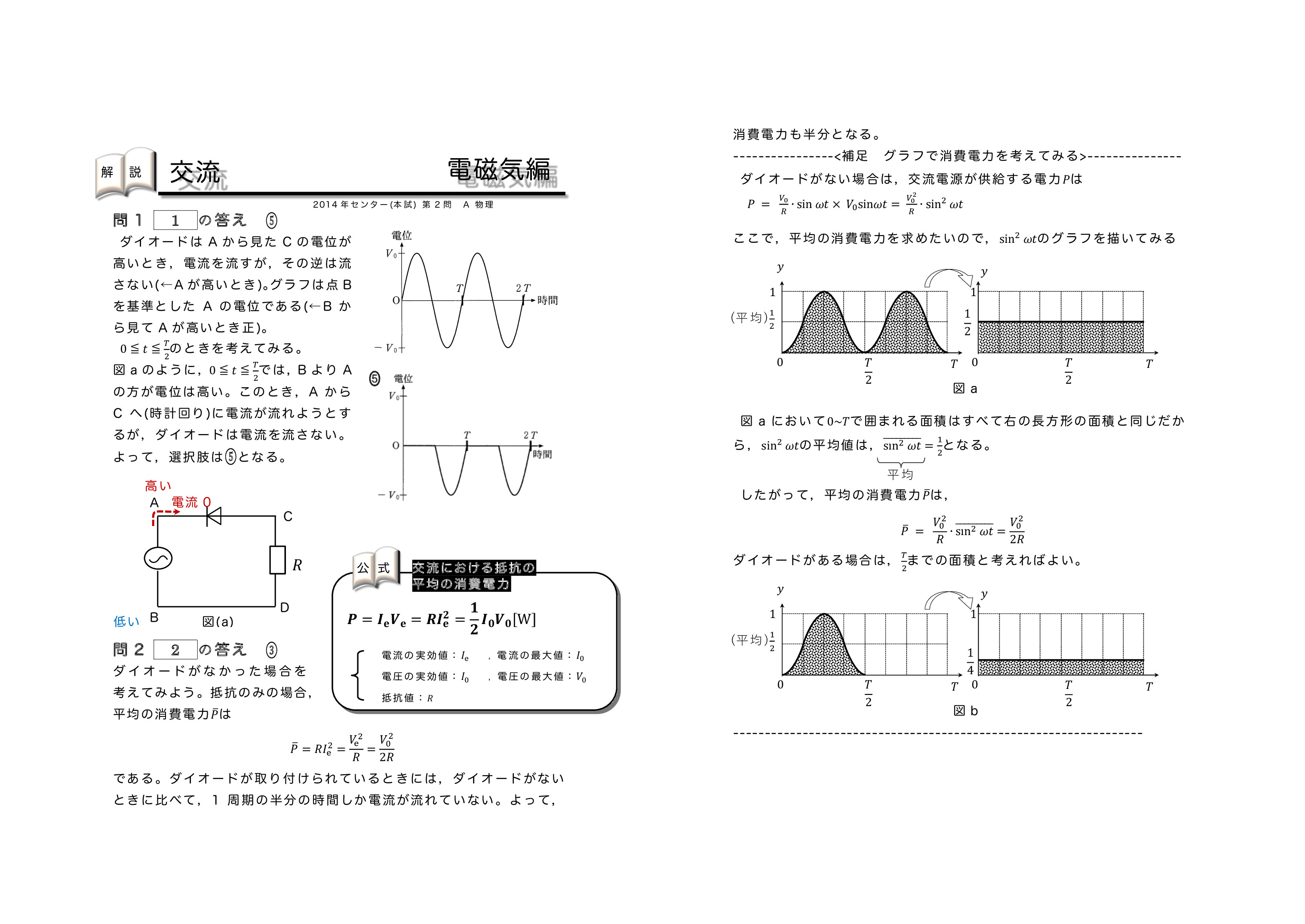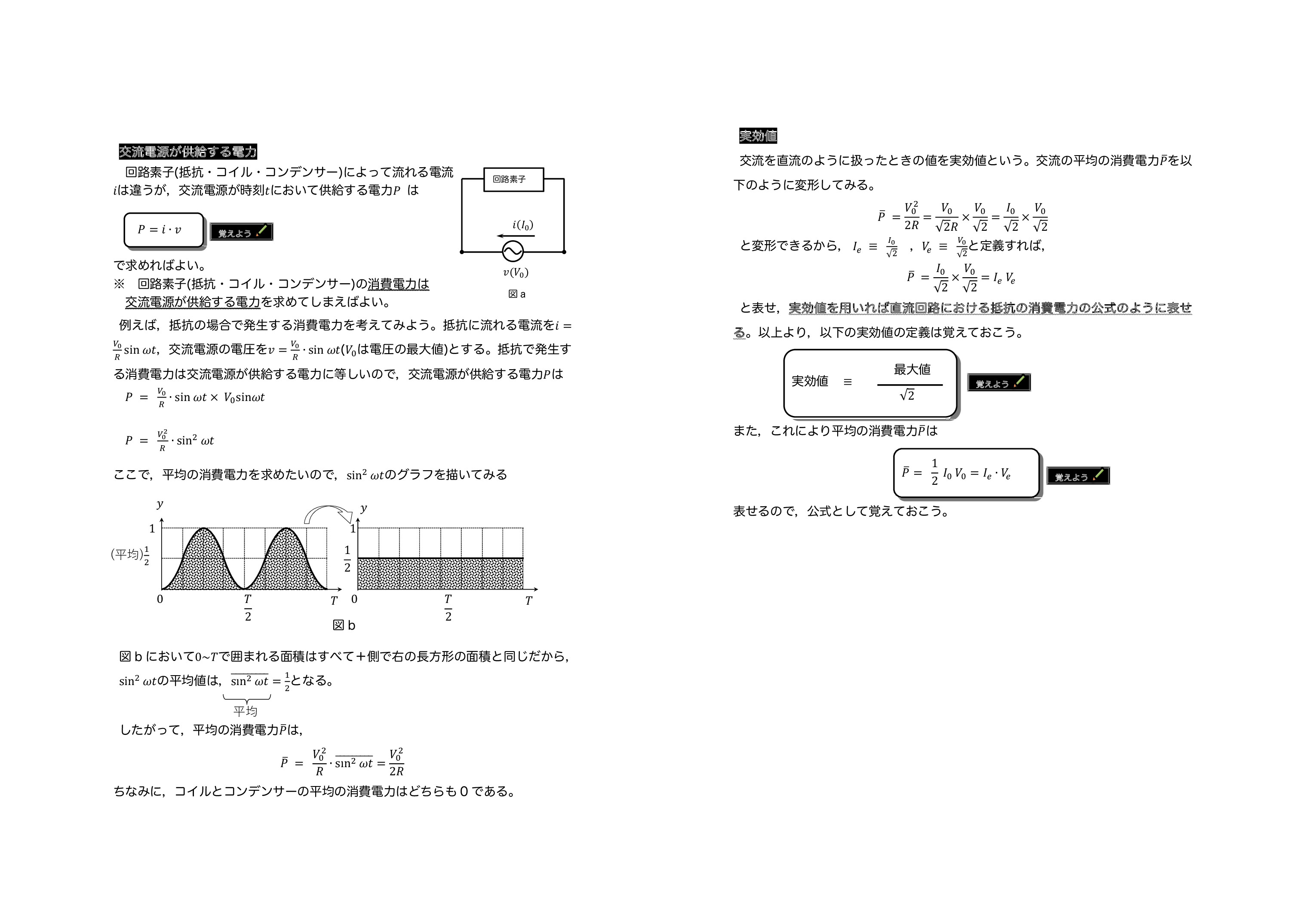 解答はこちら 参考として電力および実効値の導出を載せておきます。忘れた人は確認しておいてください。電力・実効値はこちら | ↓工事中