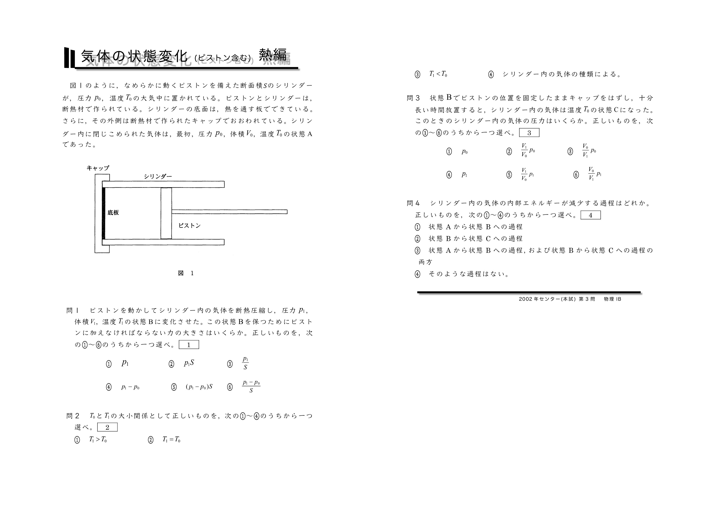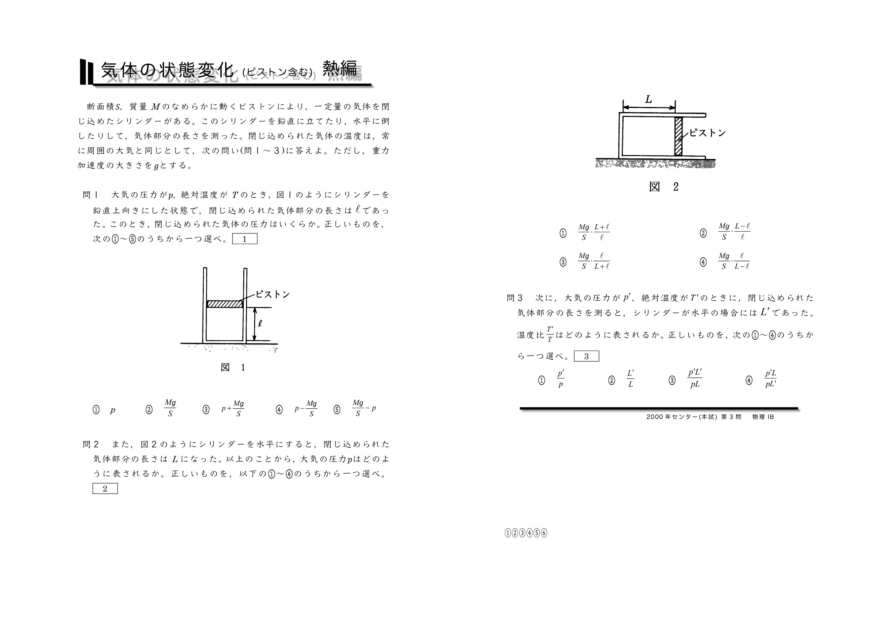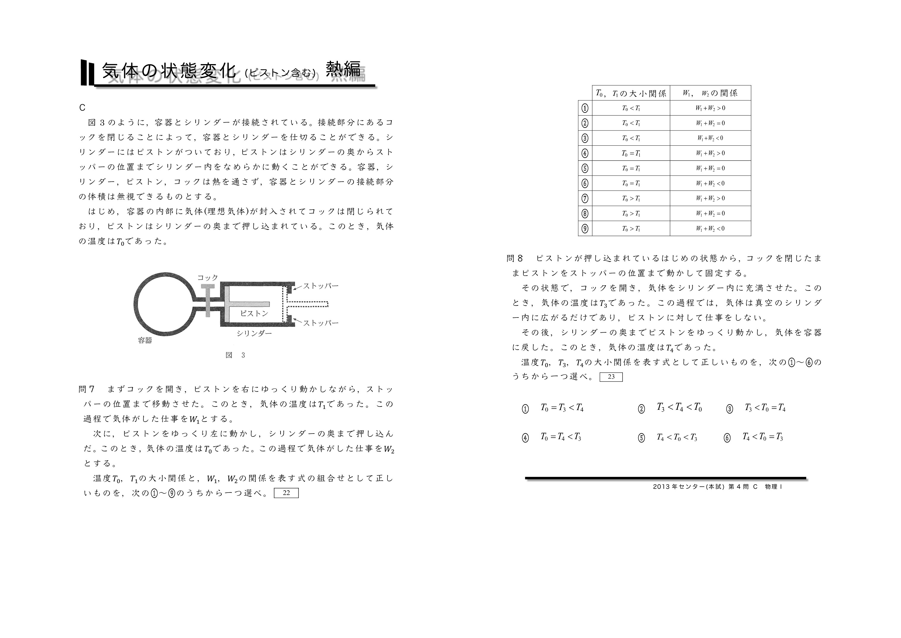 | 【 熱力学編 気体の状態変化(ピストンを含む) 】 | ||