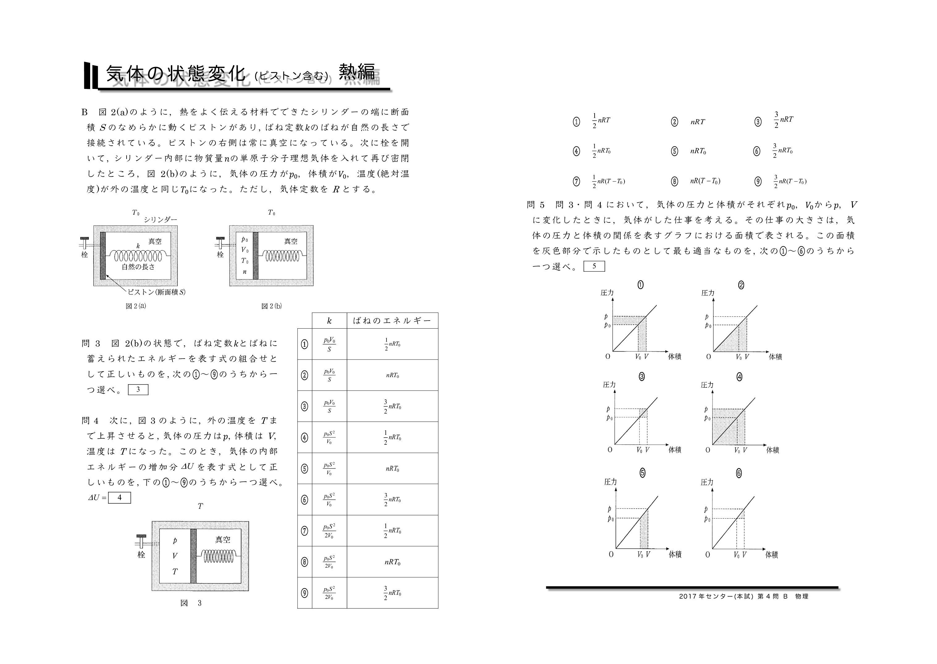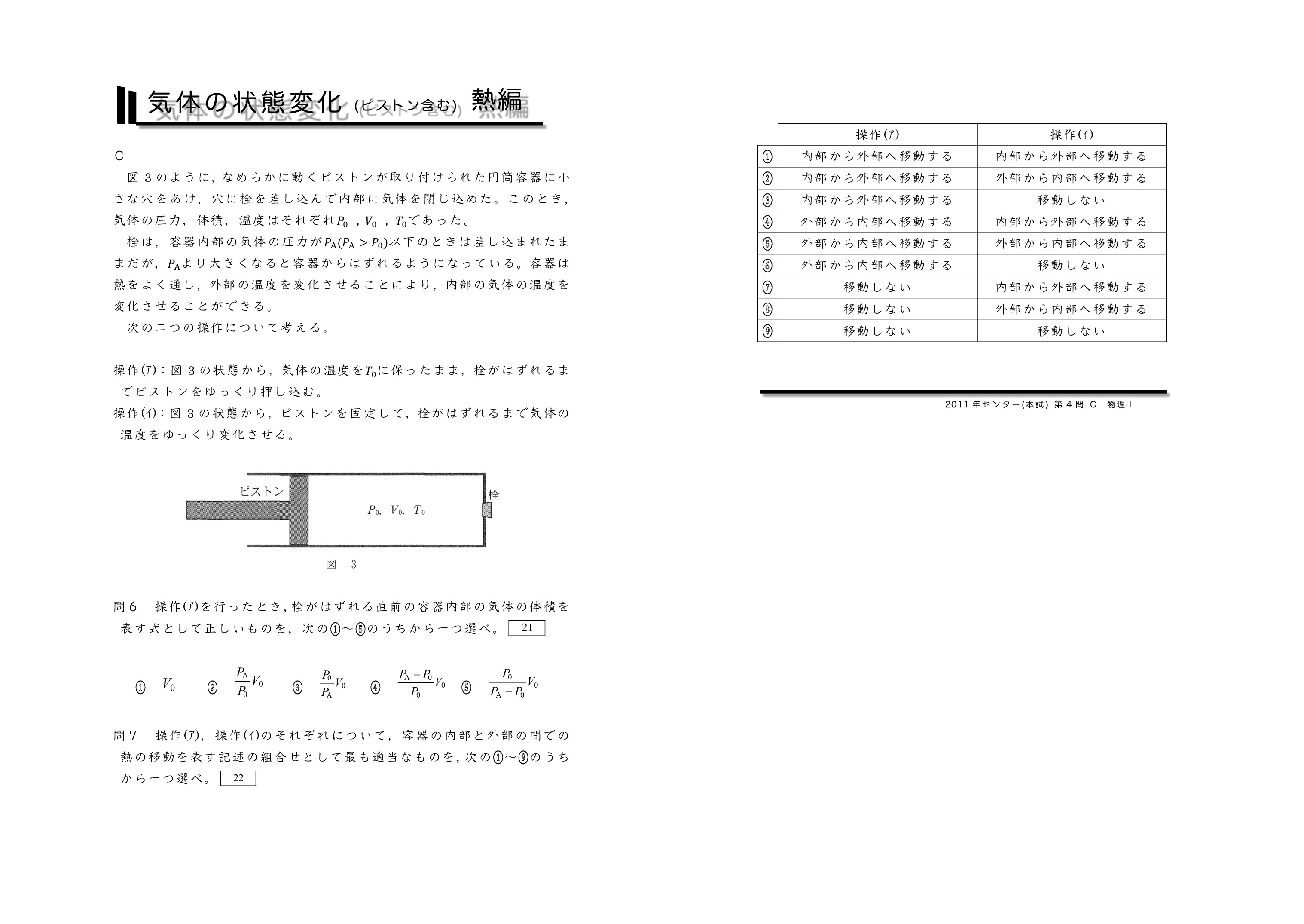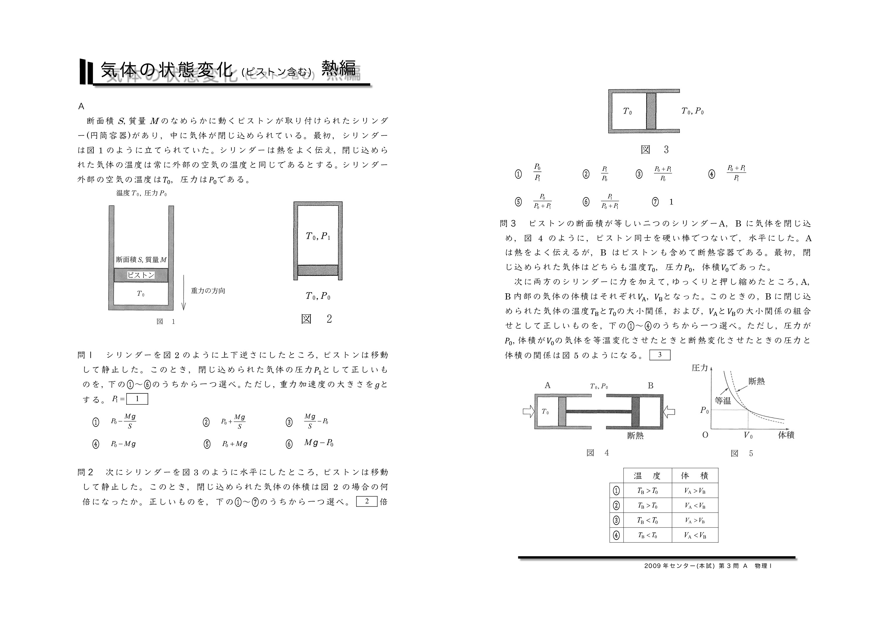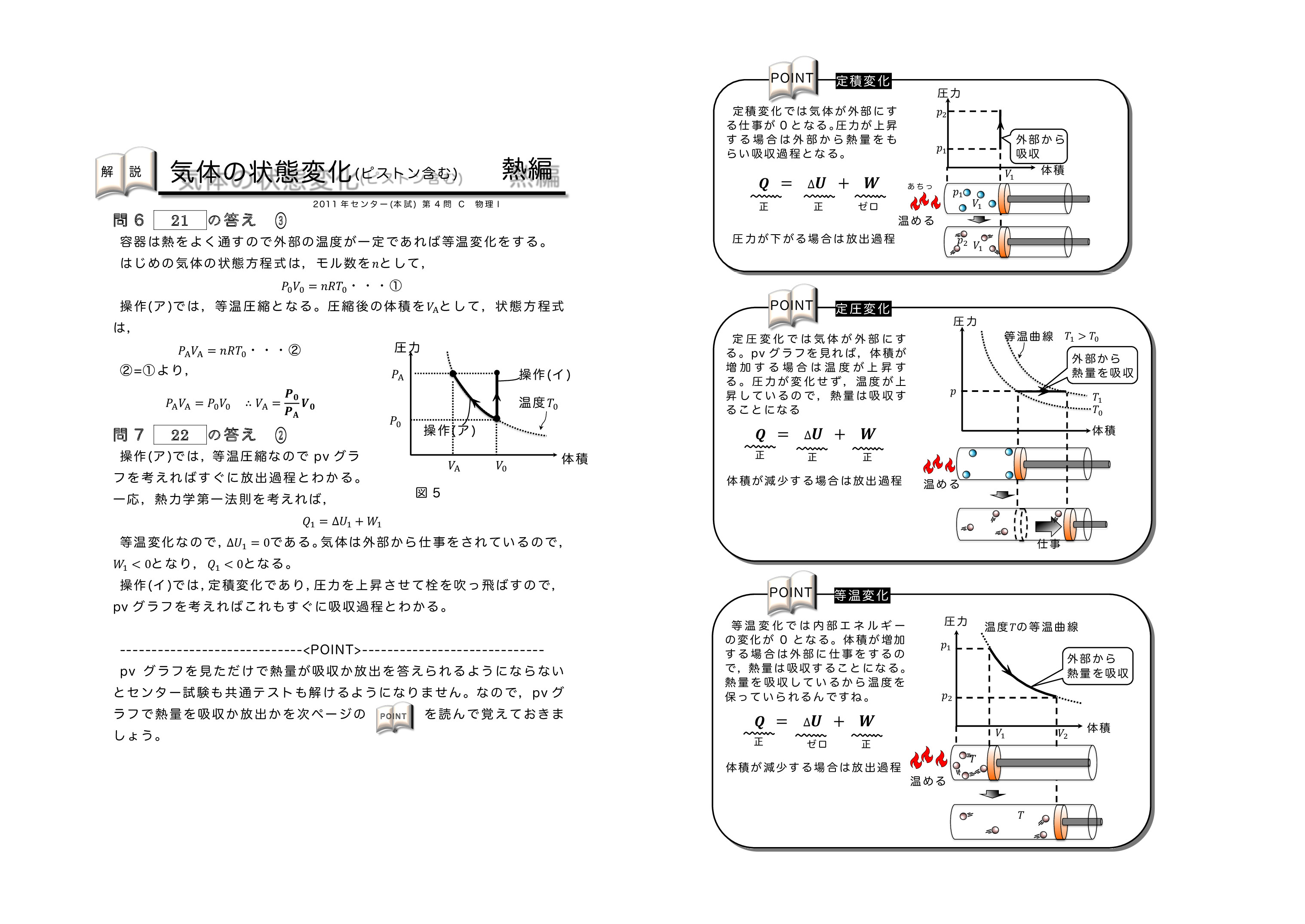 | 【 熱力学編 気体の状態変化(ピストンを含む) 】 | ||