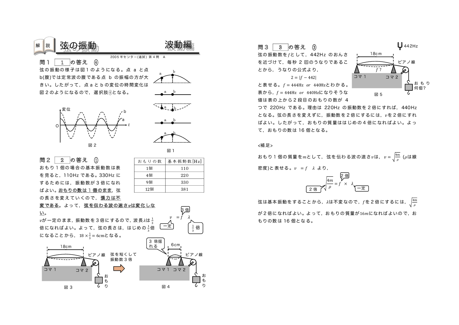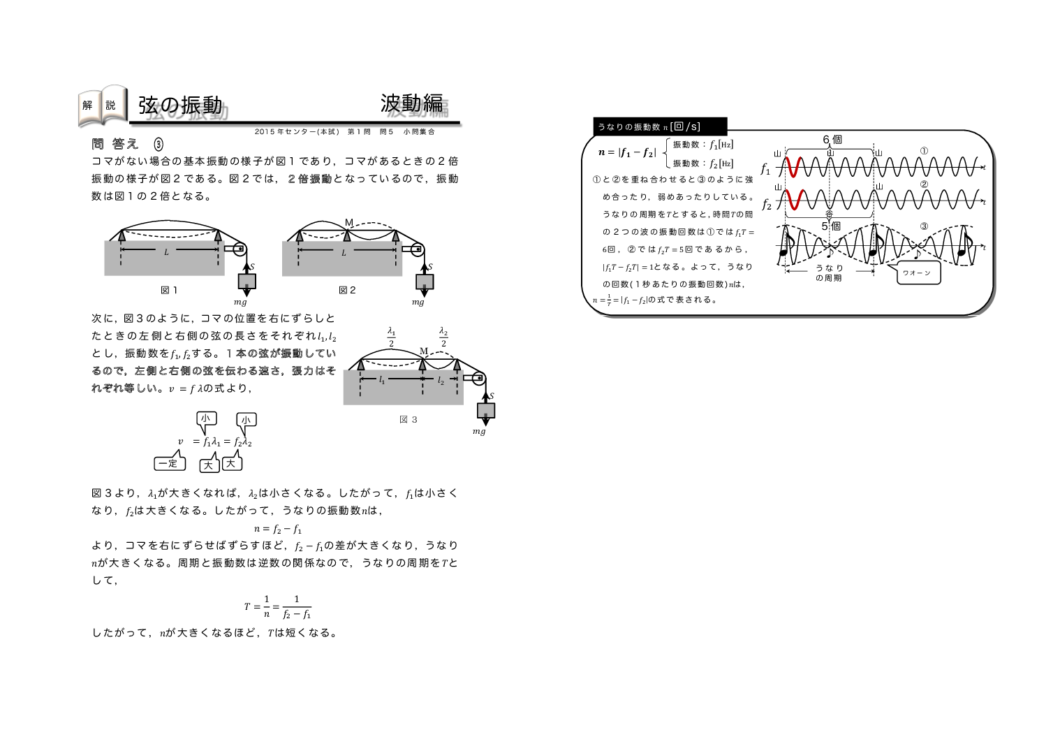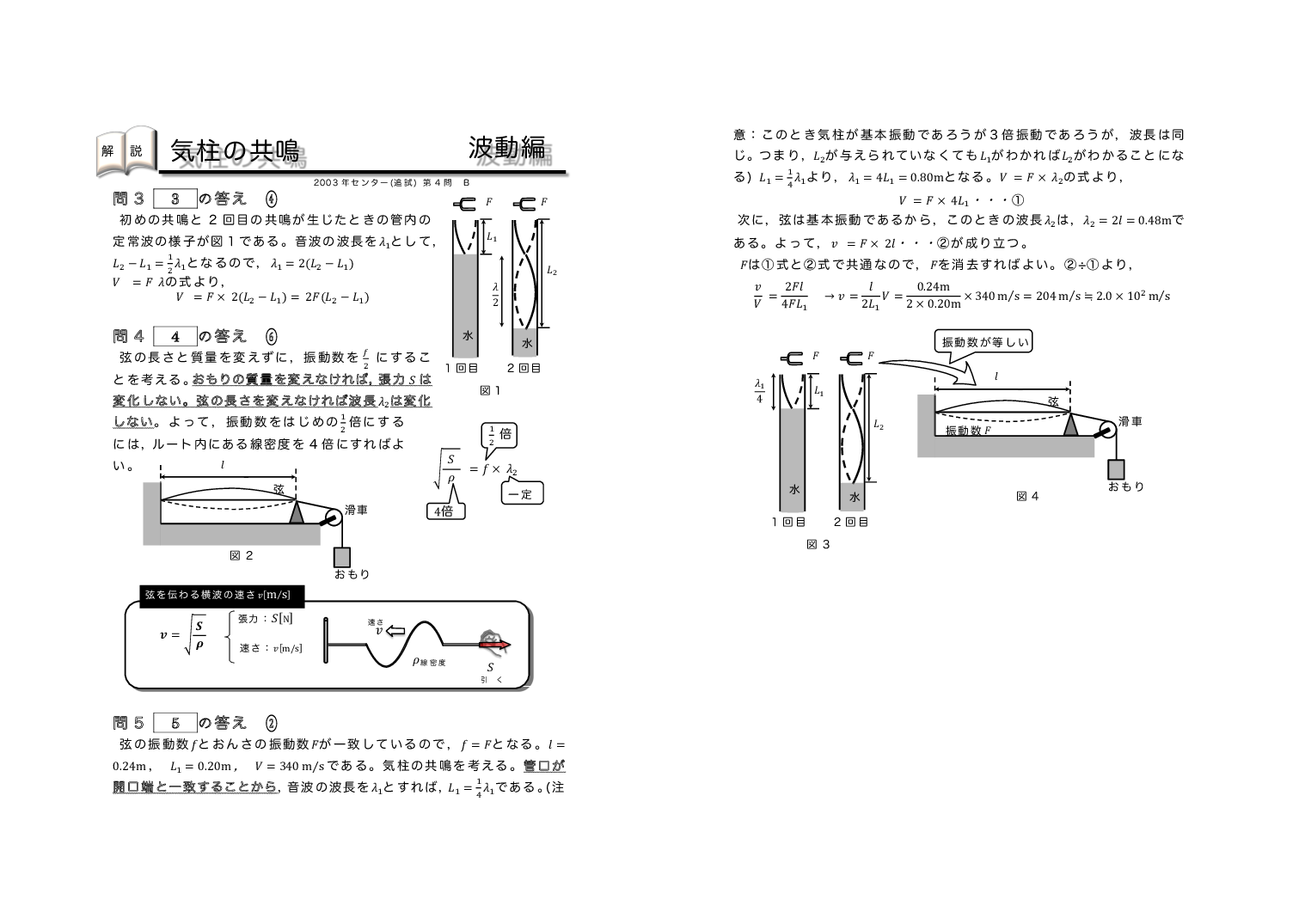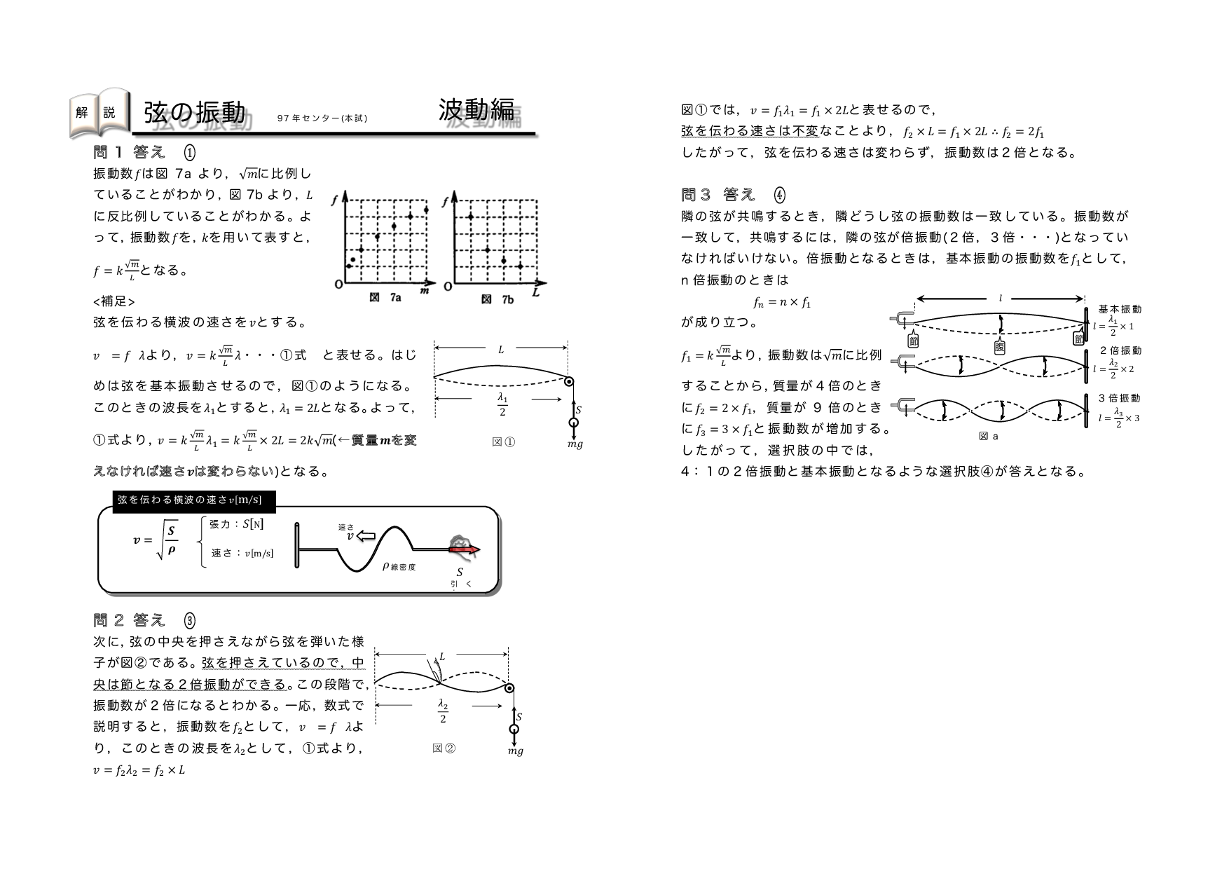 | 【 波動編 弦の振動・気柱の共鳴 】 | ||