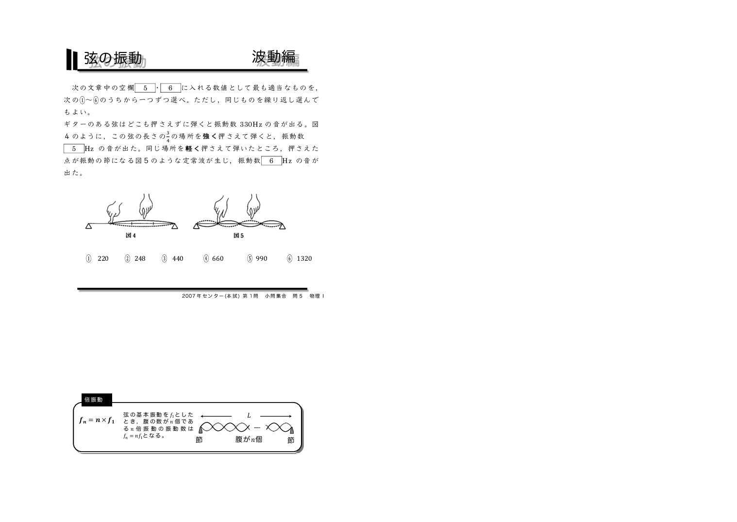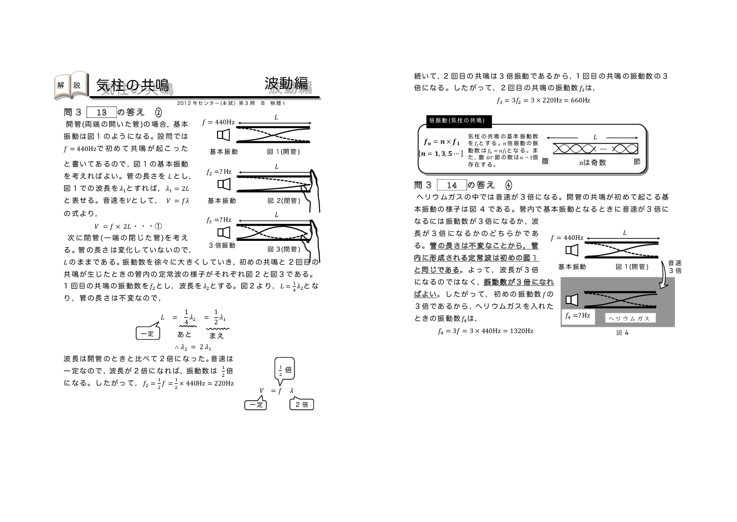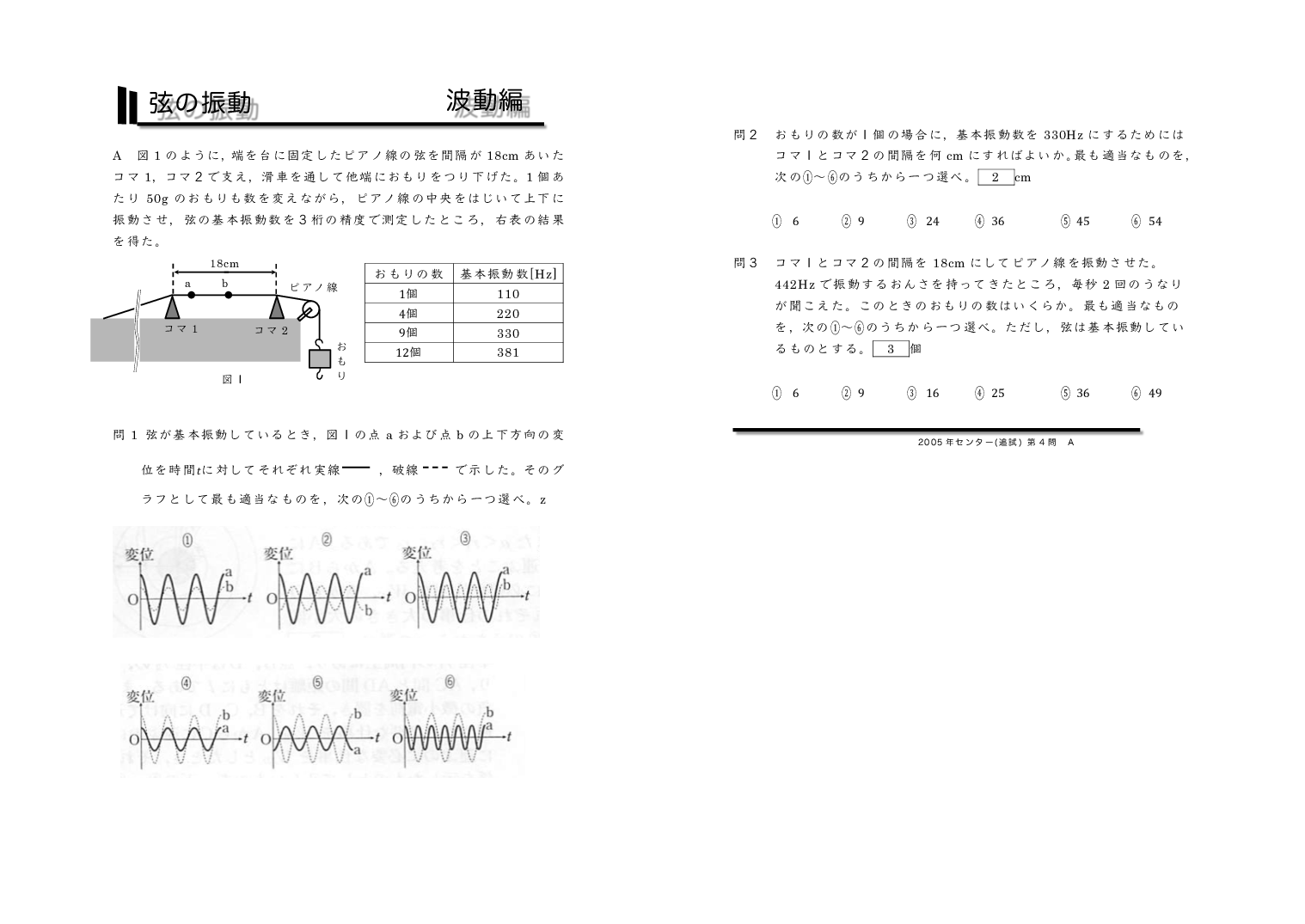 | 【 波動編 弦の振動・気柱の共鳴 】 | ||