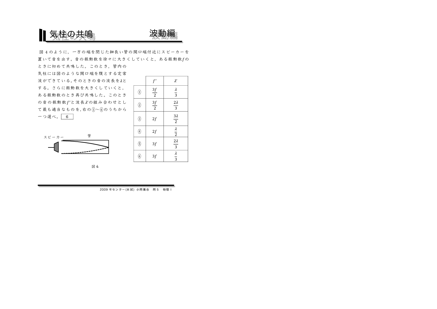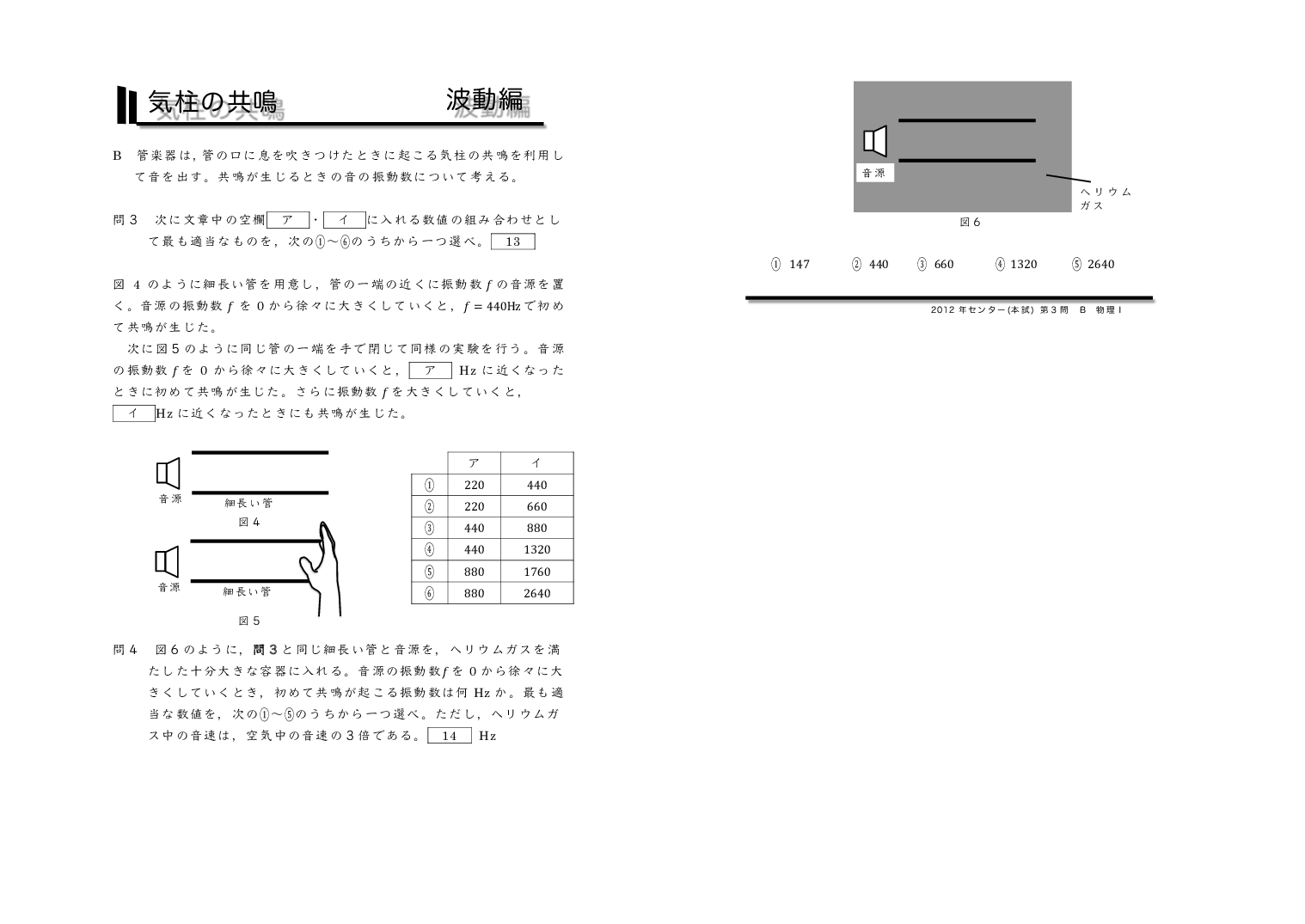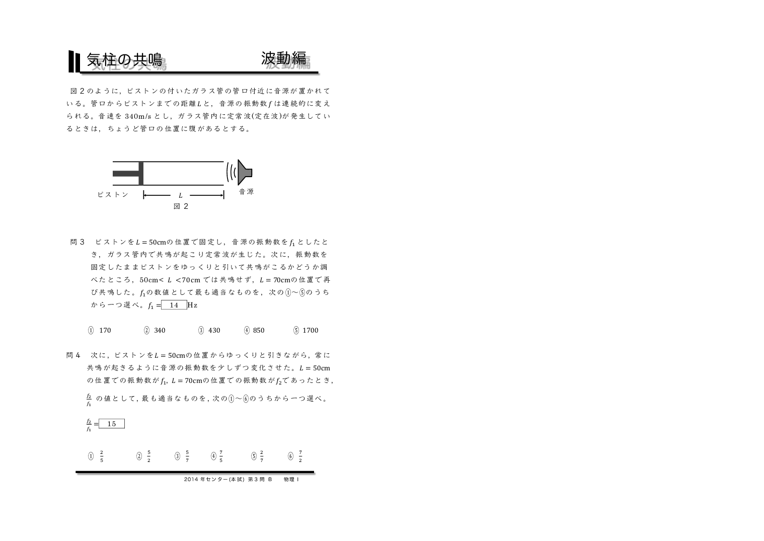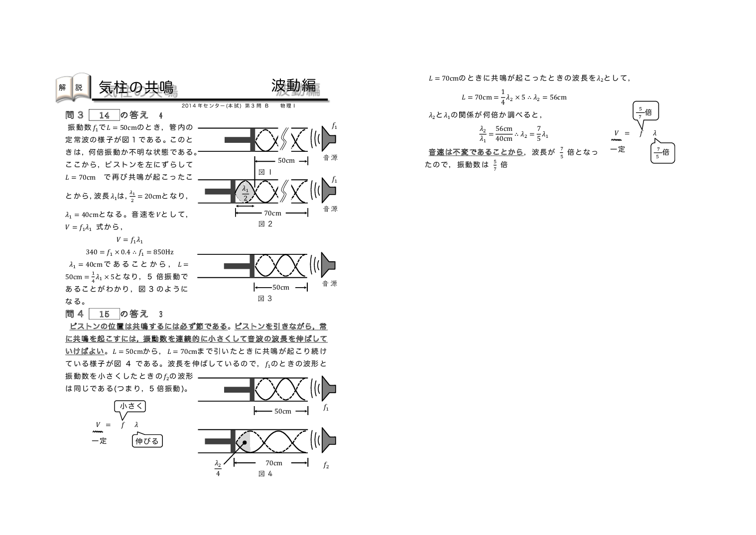 | 【 波動編 弦の振動・気柱の共鳴 】 | ||